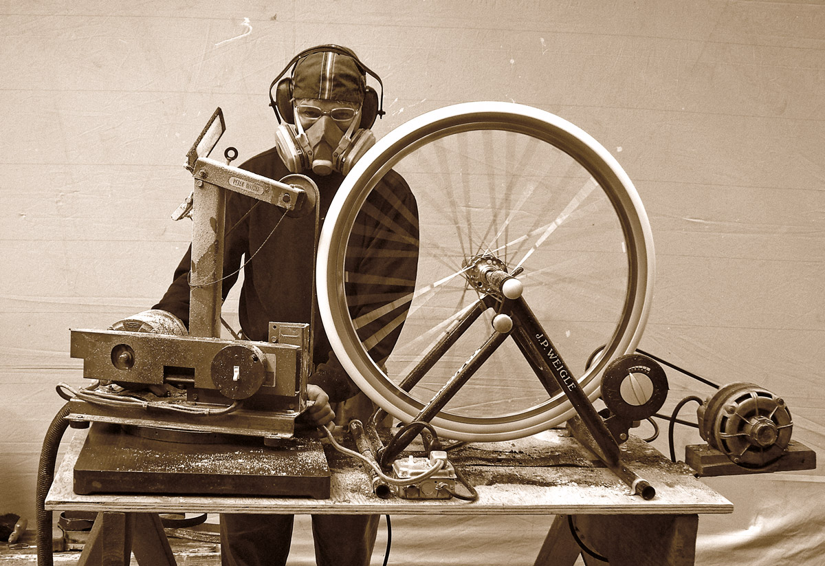 I wouldn’t say its even per se, but there’s enough meat there, basically one solid knob running along the entire side of the tire right at the transition from tread to sidewall. For the rear there was enough clearance that I could just hold the sander to the tire and it would spin in the frame, kept it pretty even on its own. The front I had to take off and put on a bench, and just rotate ever few seconds.