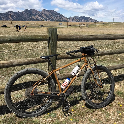 I’m 5’10" and ride the older 135 Plus with 24" ETT (dookie brown color). Bars are the 710mm Loop paired with 45mm x 0-deg stem. Post is your basic zero-offset jawn. I rode the original 23" ETT diamond frame for a year, and was initially concerned that the 24" ETT Plus would feel too long. Turns out I was wrong–the 24" Plus handles rough stuff even better.