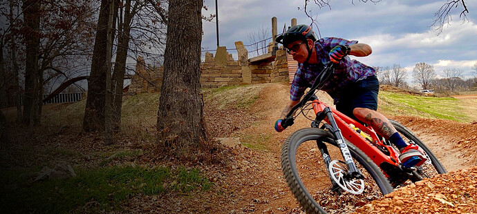 Did the one trail that turned out to be very techy and leaf covered (whoops). Some fun features. I tried rolling down this twice. First time my rear wheel started to come around and I ended up putting my uphill foot down once I was basically sideways. Thanks to the pins in my left pedal for stopping me lol. Smelled like I was trying to spark a fire.