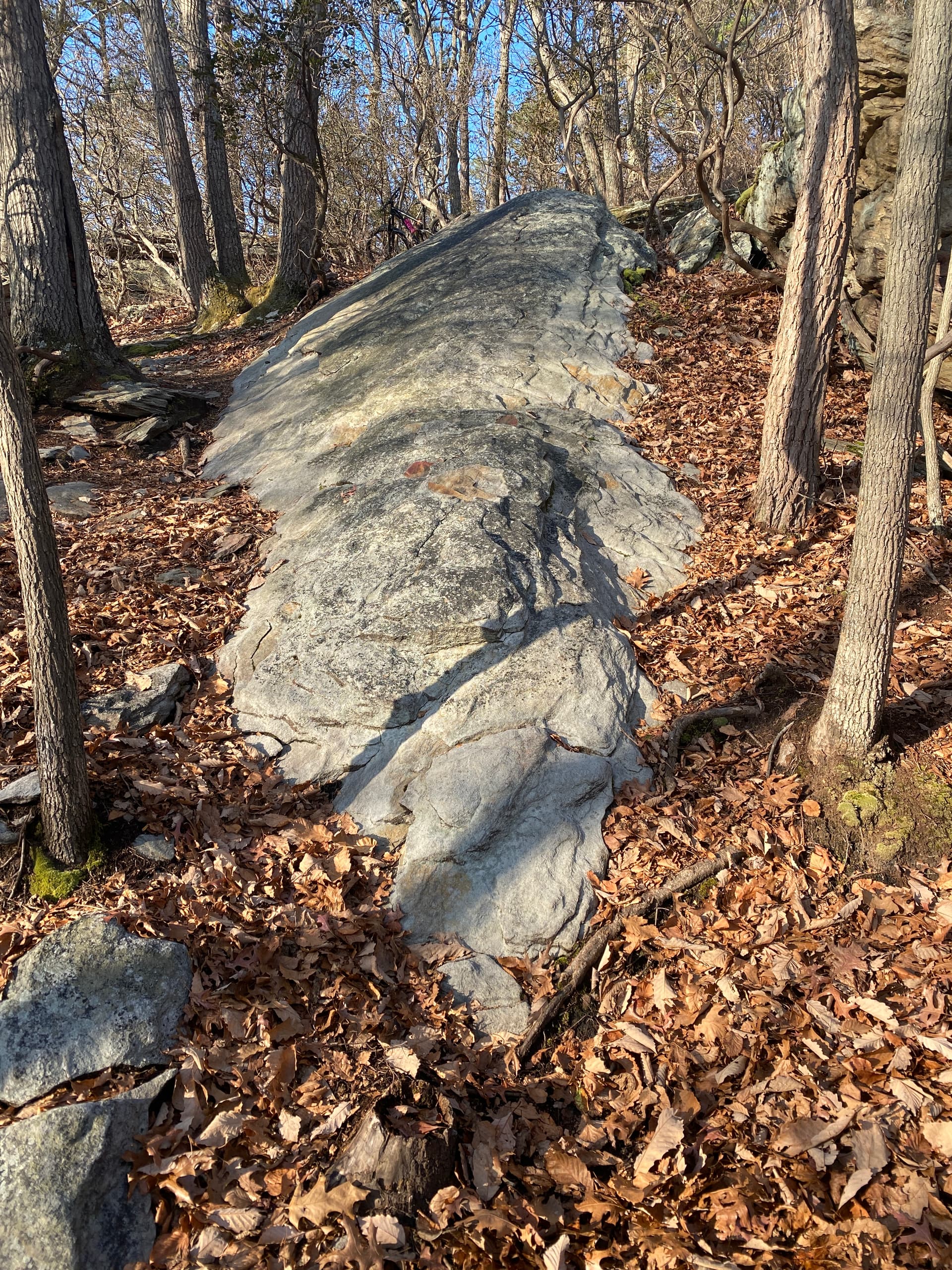 Lowered tire pressure and tried again. This time I still slid down the whole thing but kept it straight. Kind of don’t understand because it doesn’t look very steep, but traction was quite low. Cold weather x ancient rubber? Are the rocks less grippy 200 miles south?!