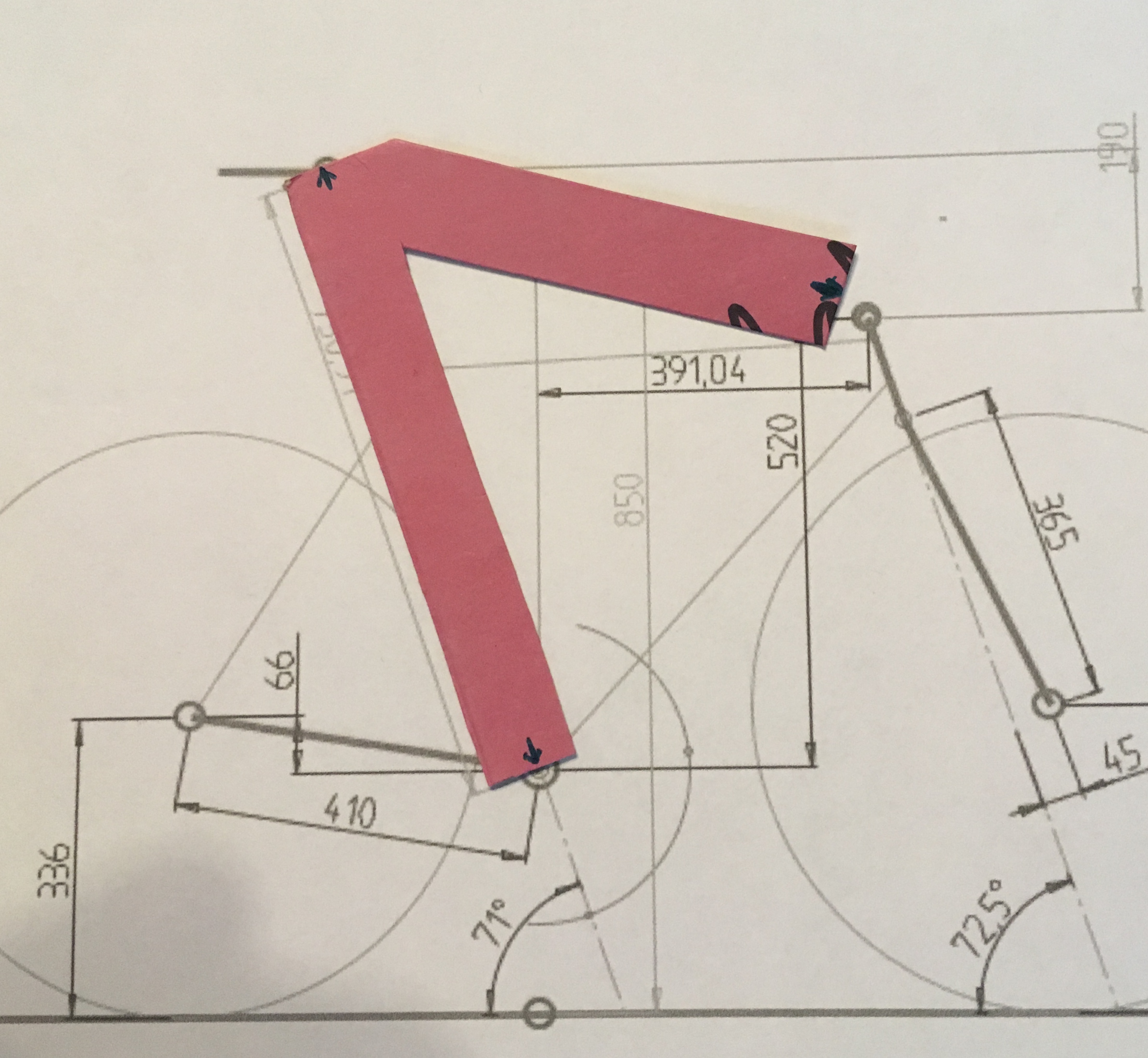 Yes, that’s correct. But if my hands are going to settle in the same place compared to the rest of my body this is a useful measuring shortcut. If you want, you can sketch out a stick-figure body extending at a less insane angle from the hips and then draw arms extending down to the handlebar nub, but the end result is the same.