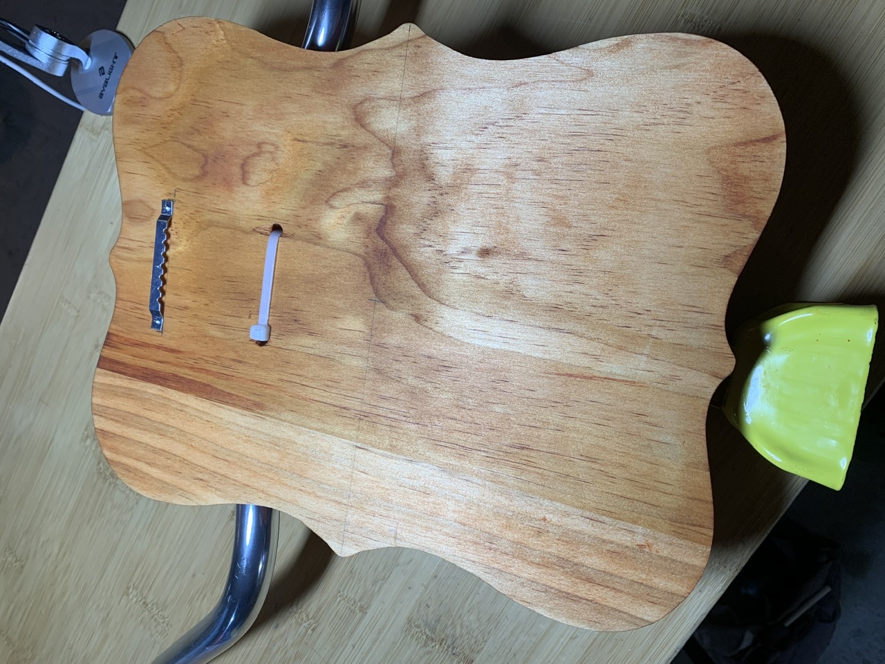 Finally found a unfinished wooden mounting plaque for my version of the Picasso. Stained it and zip-tied.