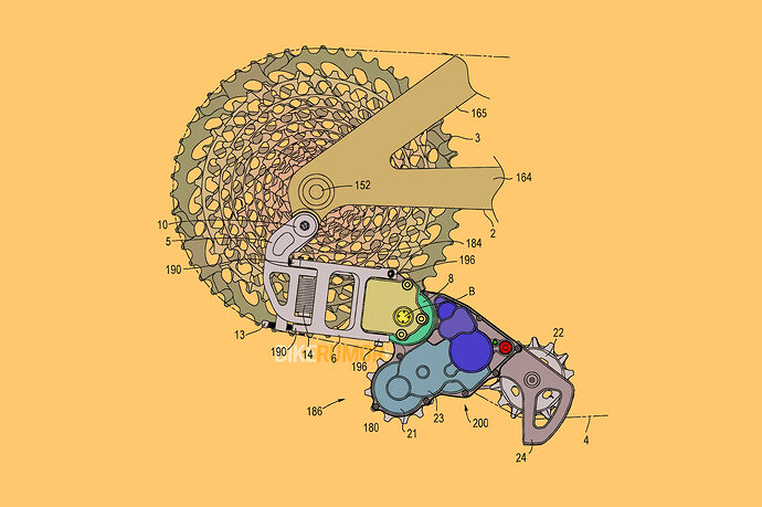 with the shifting servo action being clutched to the movement of the chain, instead of a motor directly moving the derailleur sideways