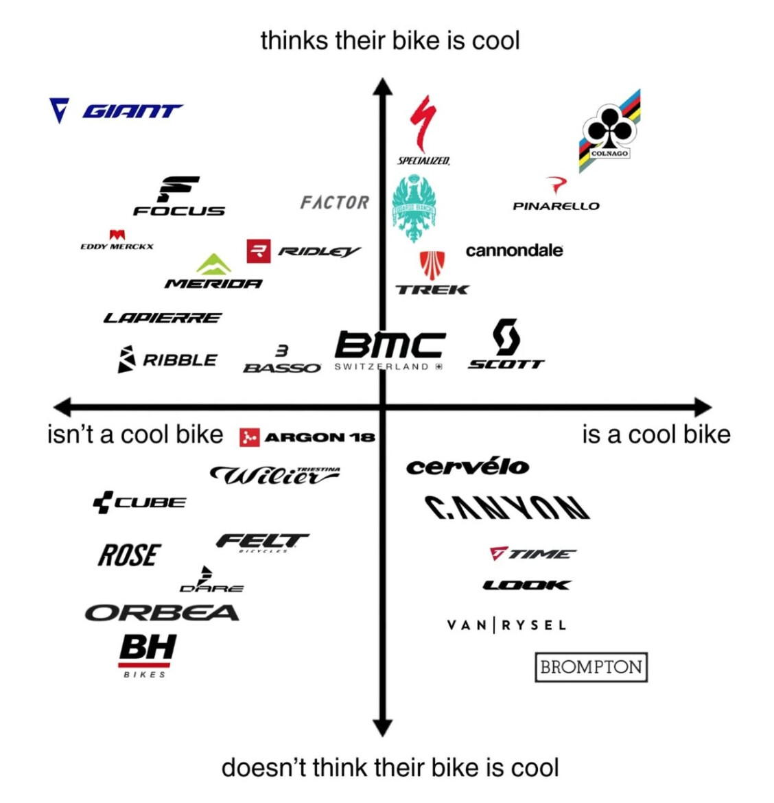 Factor needs to be in the highest top left spot. so many of the guys locally are obsessed with Factor bikes. i don’t get it.