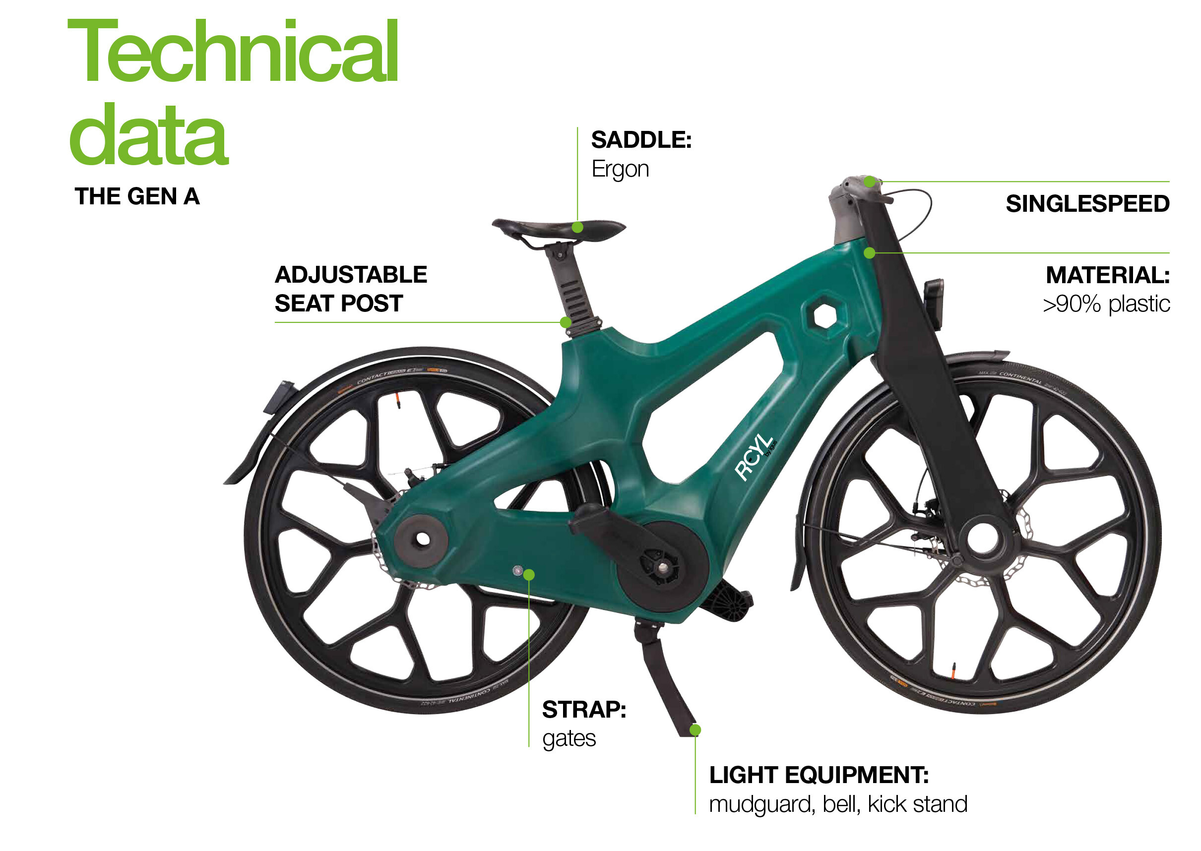 50% recycled plastic, aka 50% new plastic molded into a proprietary, difficult to service, 37 lb singlespeed