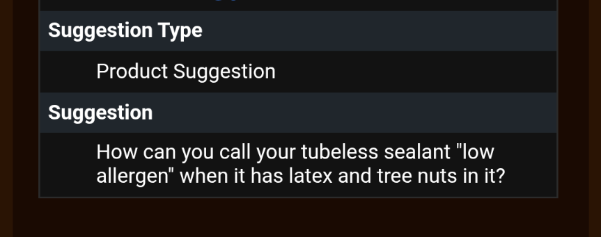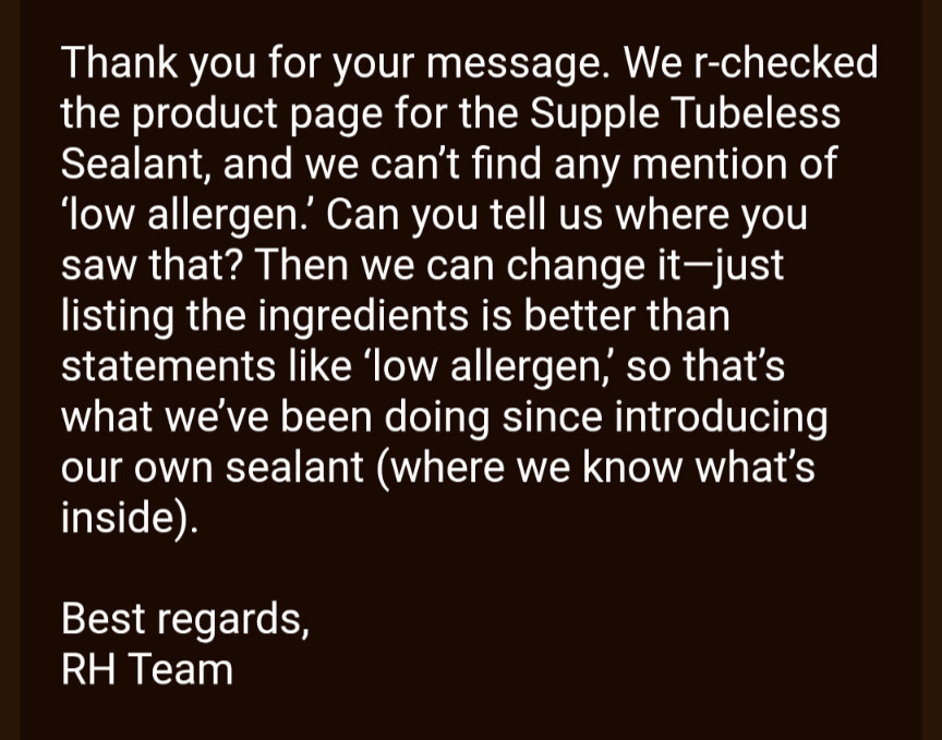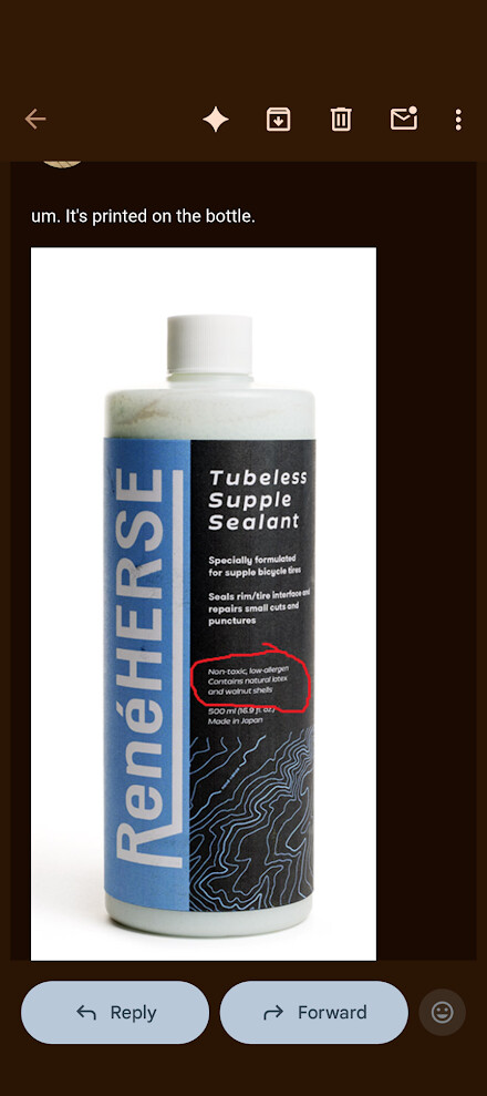 Whatâs next? âBecause our sealant is allergen-free, you can just pour it into your mouth, hold the valve between your lips, and spit the sealant into your tire. No need to carry additional messy tools on tour just in case you need to add sealant to our tires that leak almost as well as our $20 3DP funnel.â
