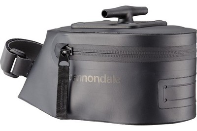 Slick little bag, very stealth, but very basic. It’s just a big plain void inside - no little pockets or nothin! Seems waterproof. Says Cannondale on it but it’s so subdued that it’s not really noticeable.