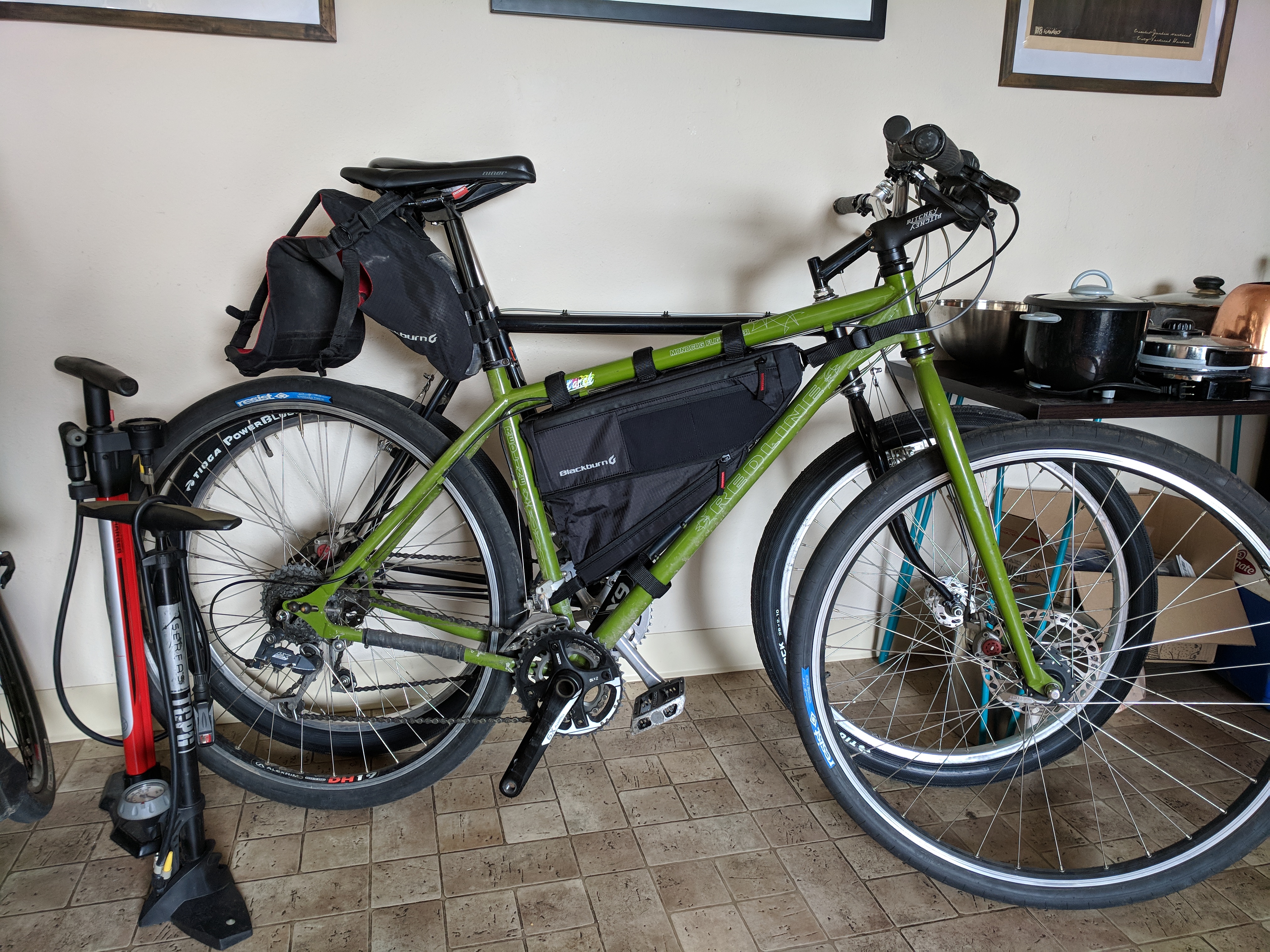 That’s a really neat idea! Luckily, our trusty REI HalfDome2’s poles fit perfectly along my toptube.