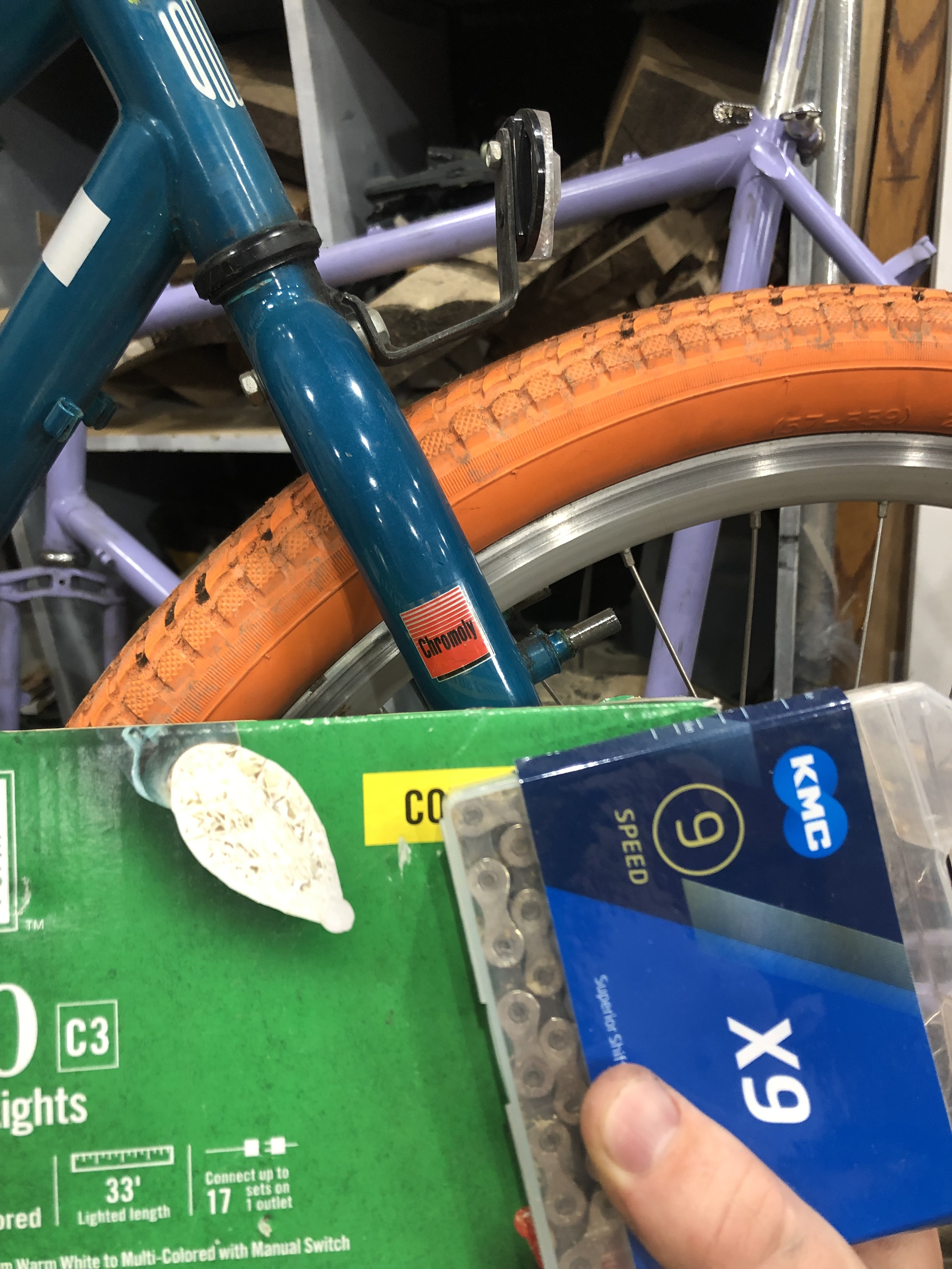 The front tire is orange.