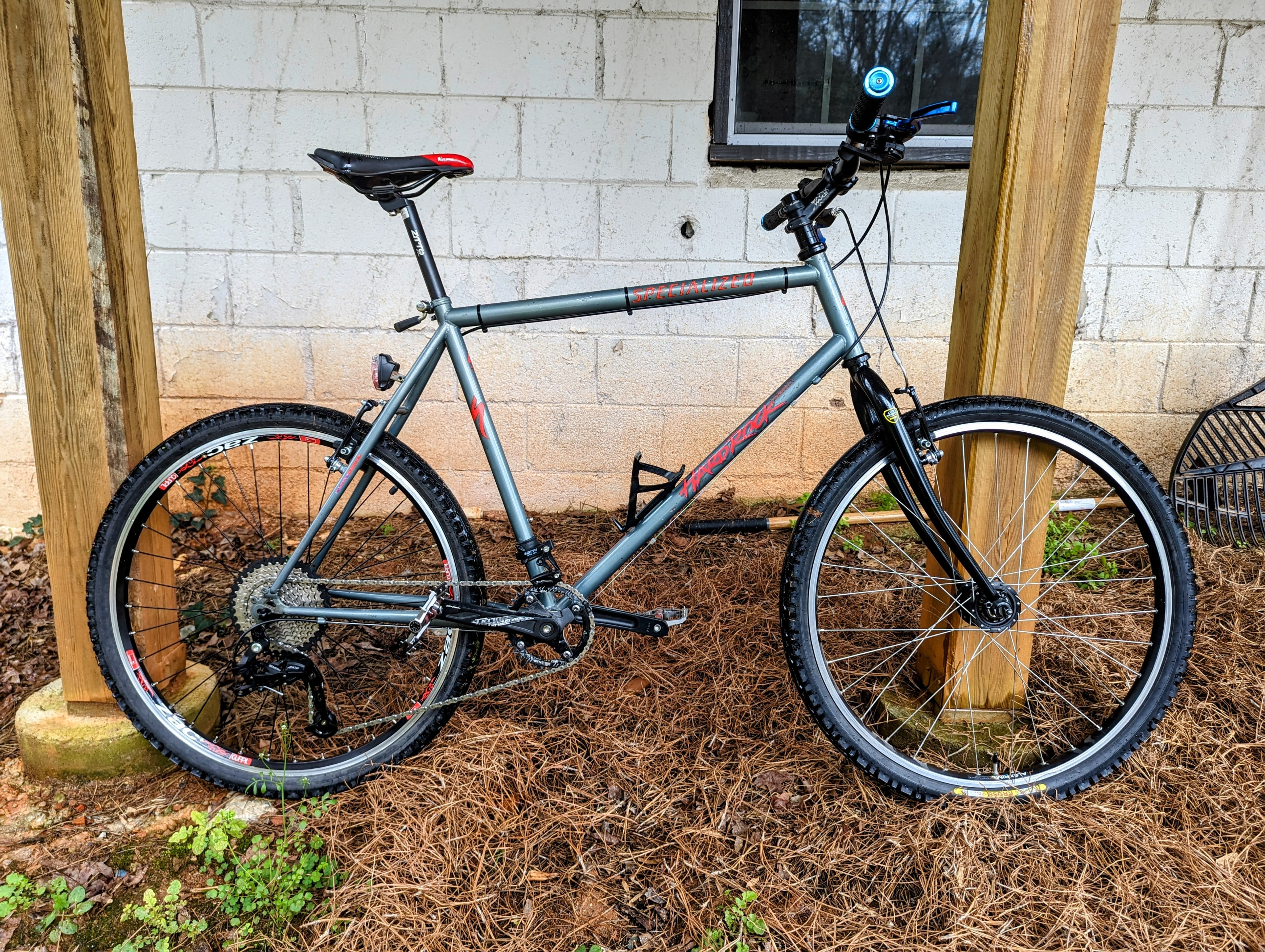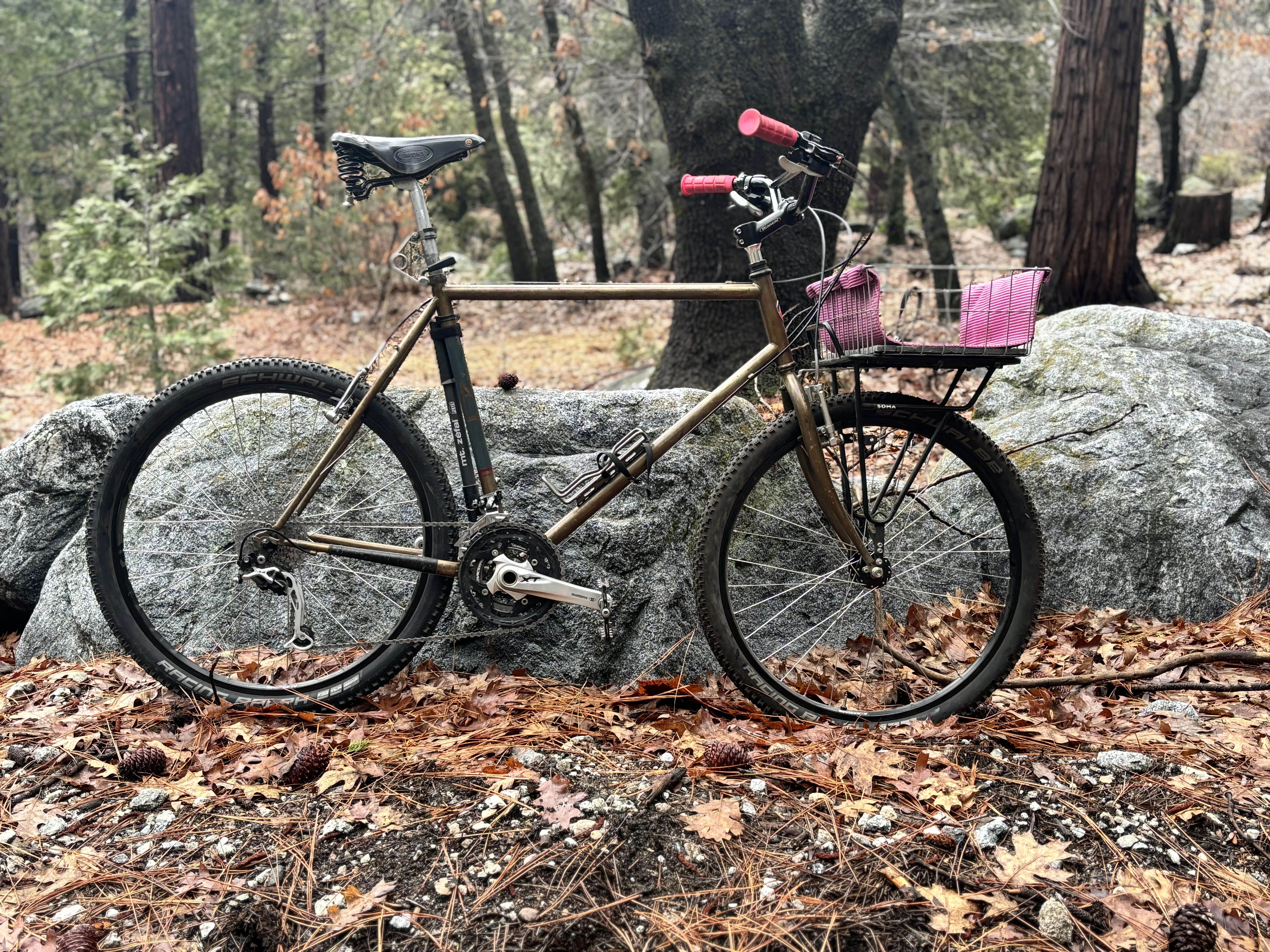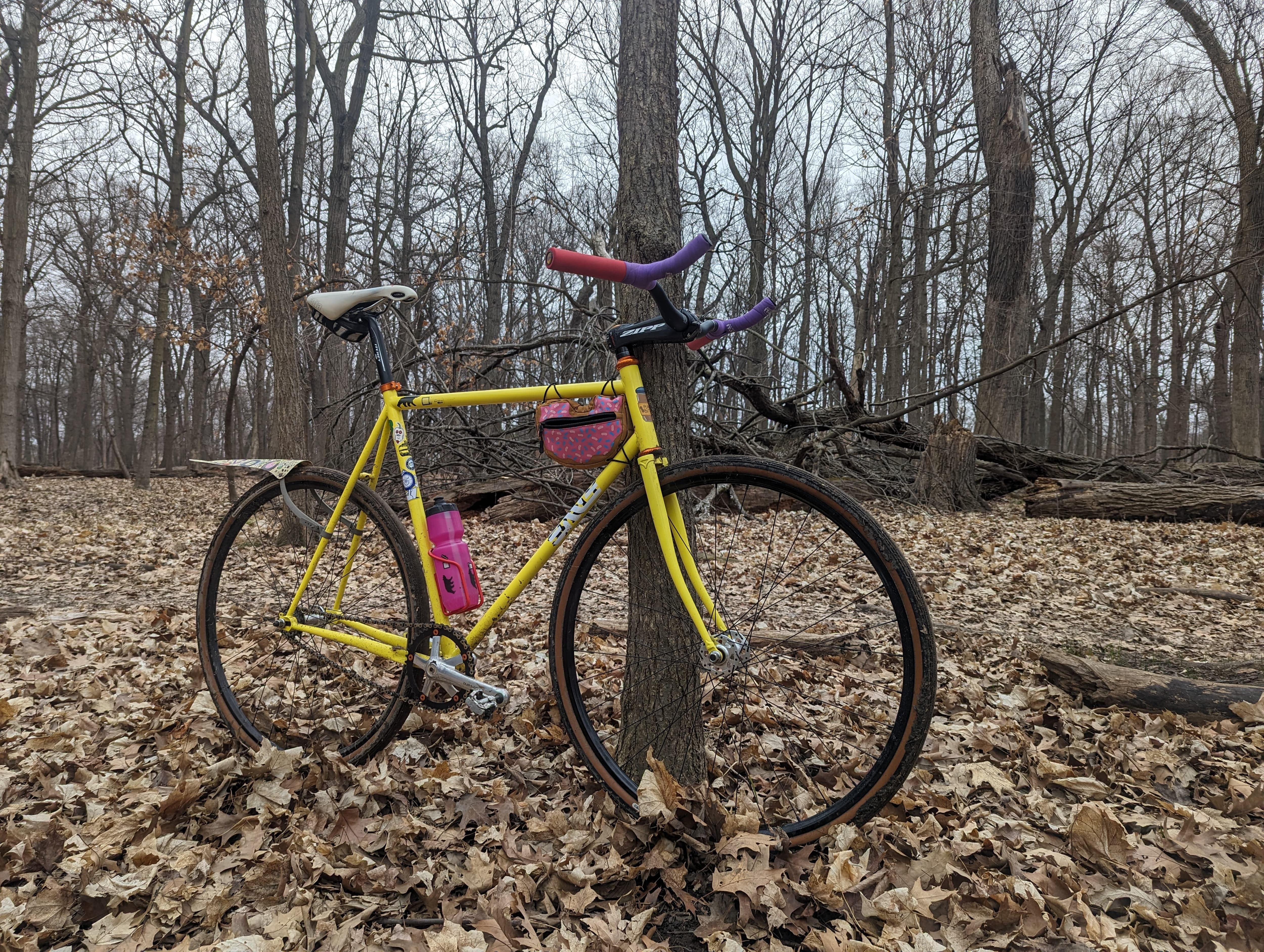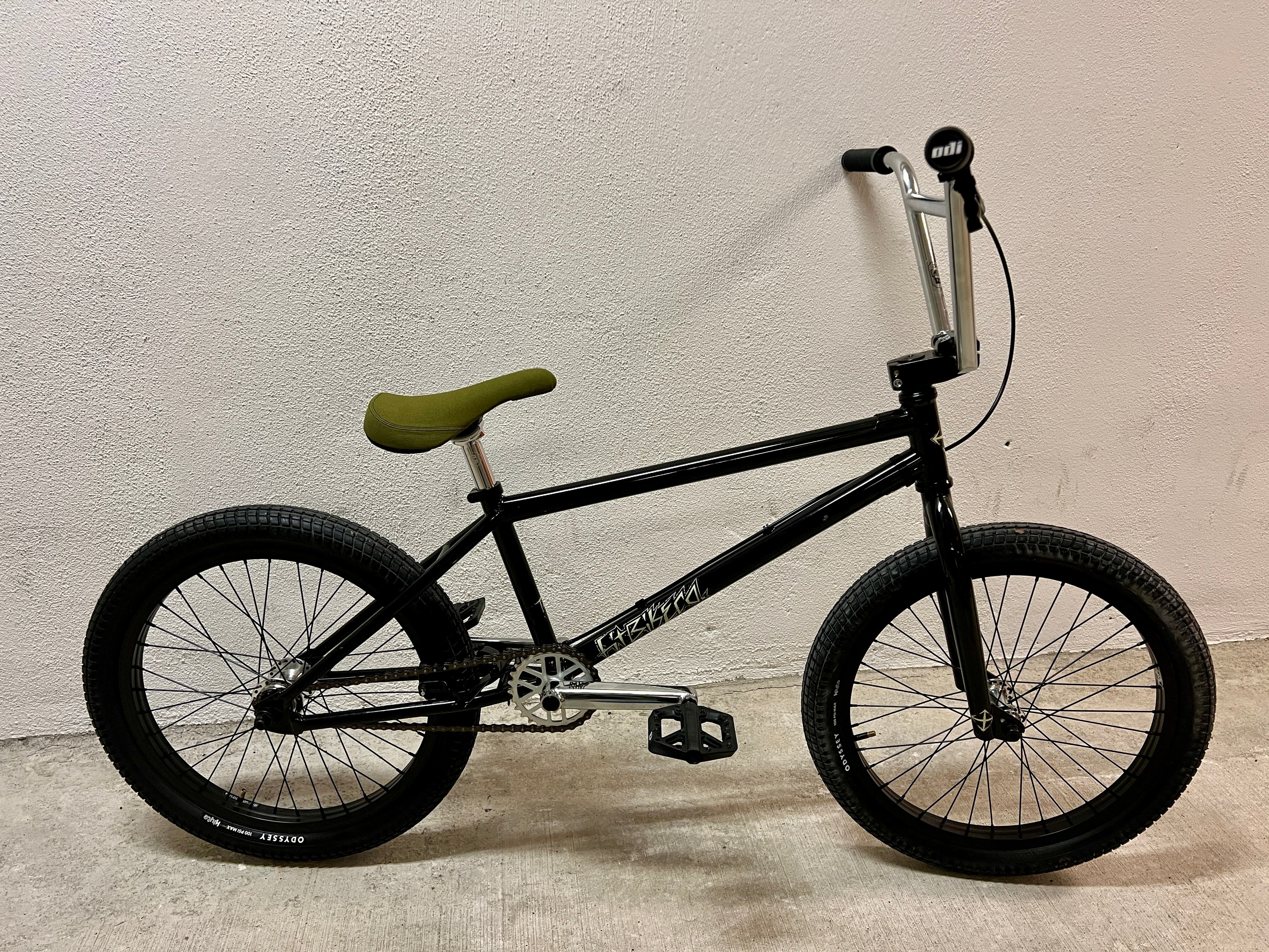 Did some parts swapping (post, saddle, cranks, and Stamp pedals) and put on some Aitken folding tires before hitting the dirt jumps today. Much more grip railing a dirt berm than the previous oem tires. 1 pound lighter chrome fork coming in the mail is gonna make a huge difference and look rad.