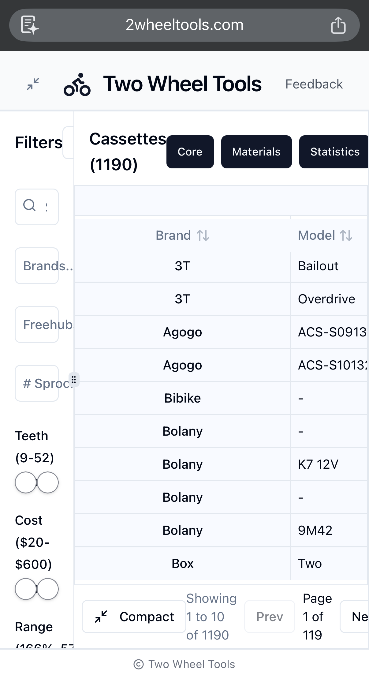 The big drivetrain spreadsheet has been updated to a website. It’s nice.