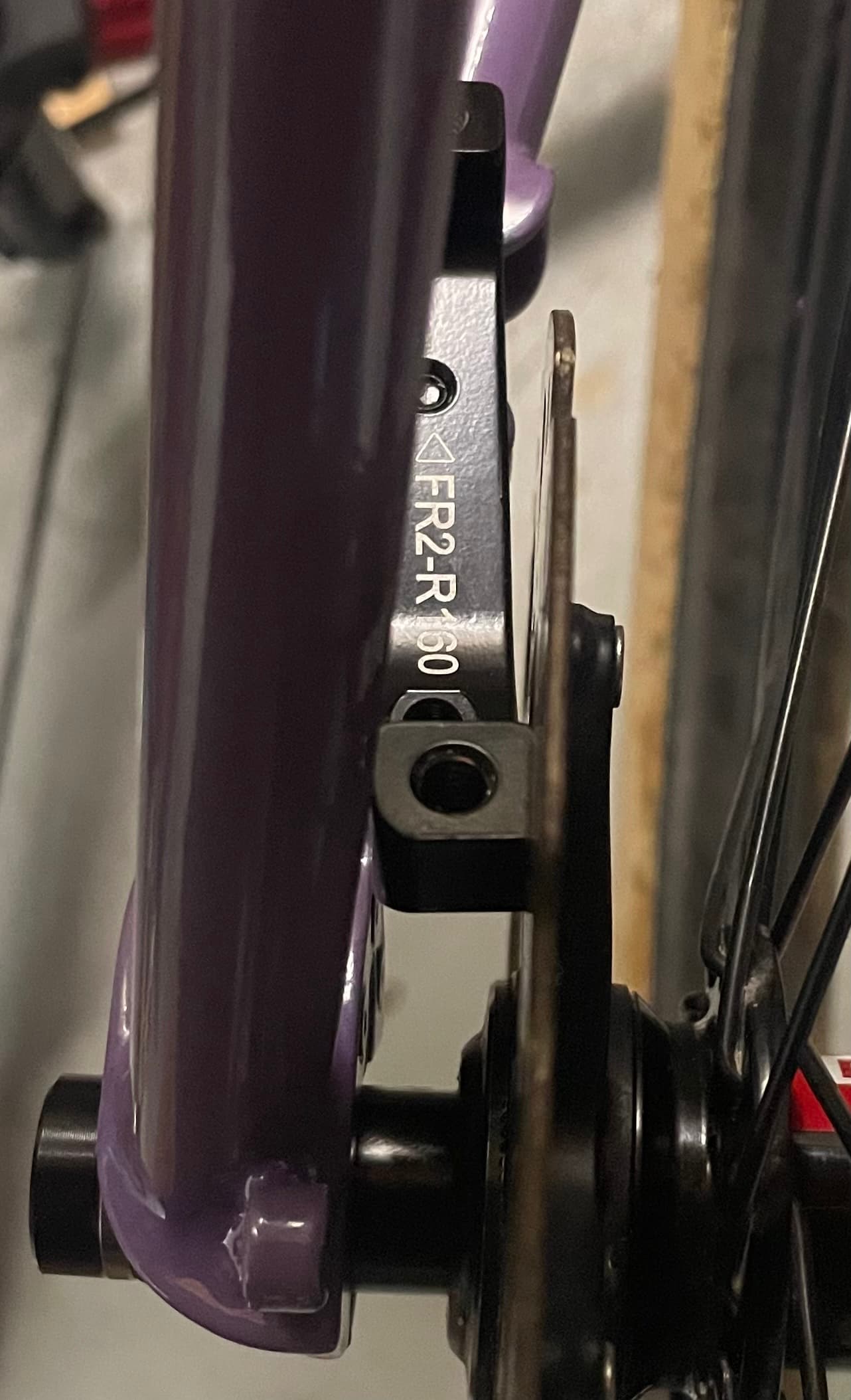 Edit: some photos of small size interference. The adapter can’t kick out of the way of the rotor enough due to the seatstay, meaning a flat mount brake is required.