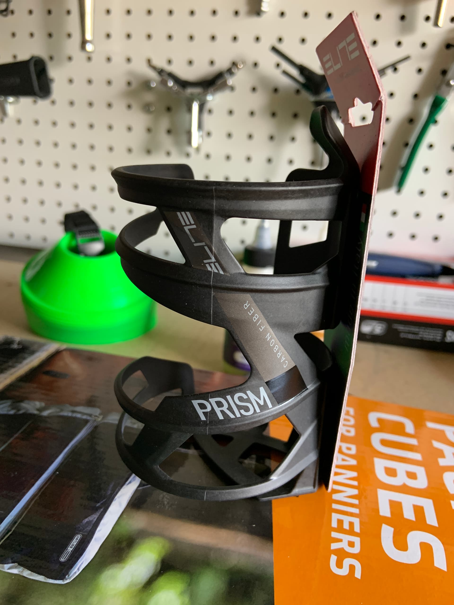 Elite Prism side-entry composite bottle cages. One “right” and one “left.” Dark grey color. New with packaging - $25 for the pair.