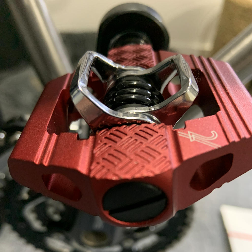 Selling a pair of red Crankbrothers Candy 2 clipless pedals. These were ridden on an indoor trainer for maybe three hours. Includes two sets of the standard-release gold cleats, and one set of the brass, easy-release cleats. The pedals/cleats have never touched the ground. $75 including Priority Mail shipping (Con US).