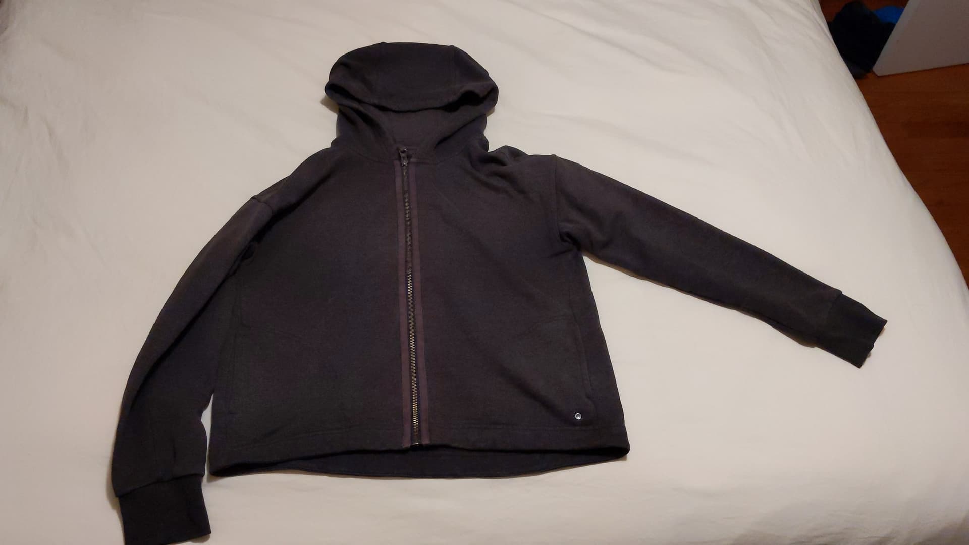 Ground scored a medium prana hoodie. Washed it and I think it’s a women’s medium (midsection is too short). Some cotton hemp blend I think in gray