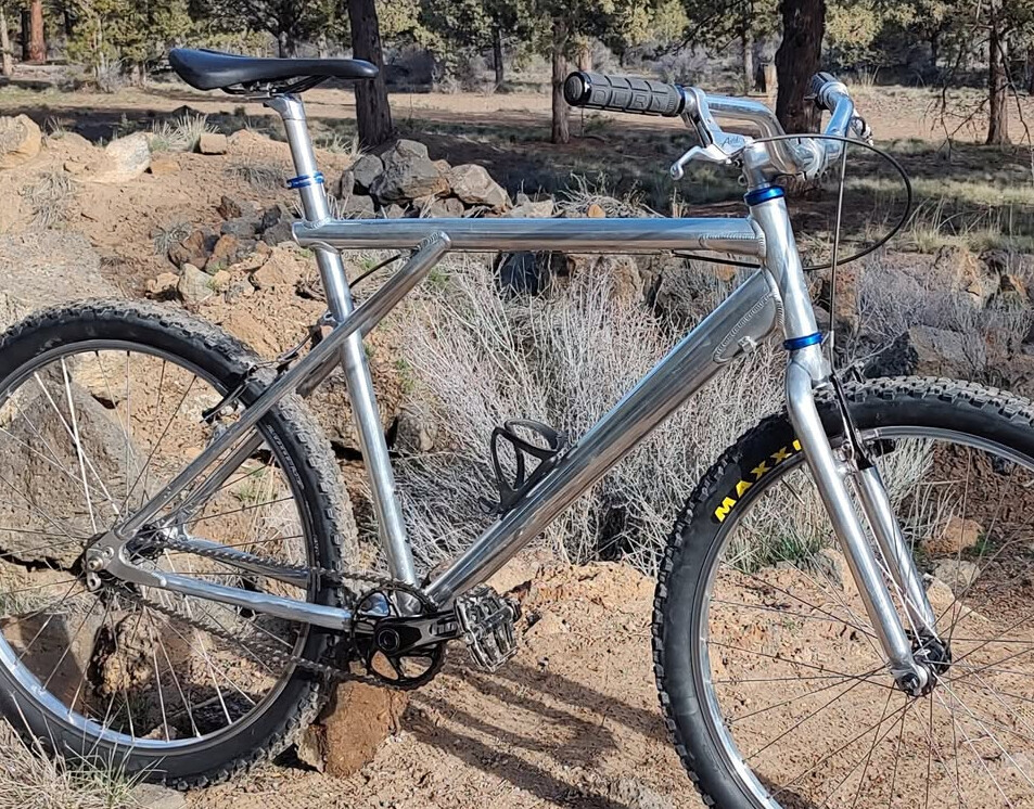 GT Zaskar 1997. 20" size. Ball burnished. No dents or dings or cracks. Some rash from chain slap and that kind of thing but is actually way cleaner than this pic. Dangler hanger etc. intact for running gears, I just got lucky on a magic ratio.