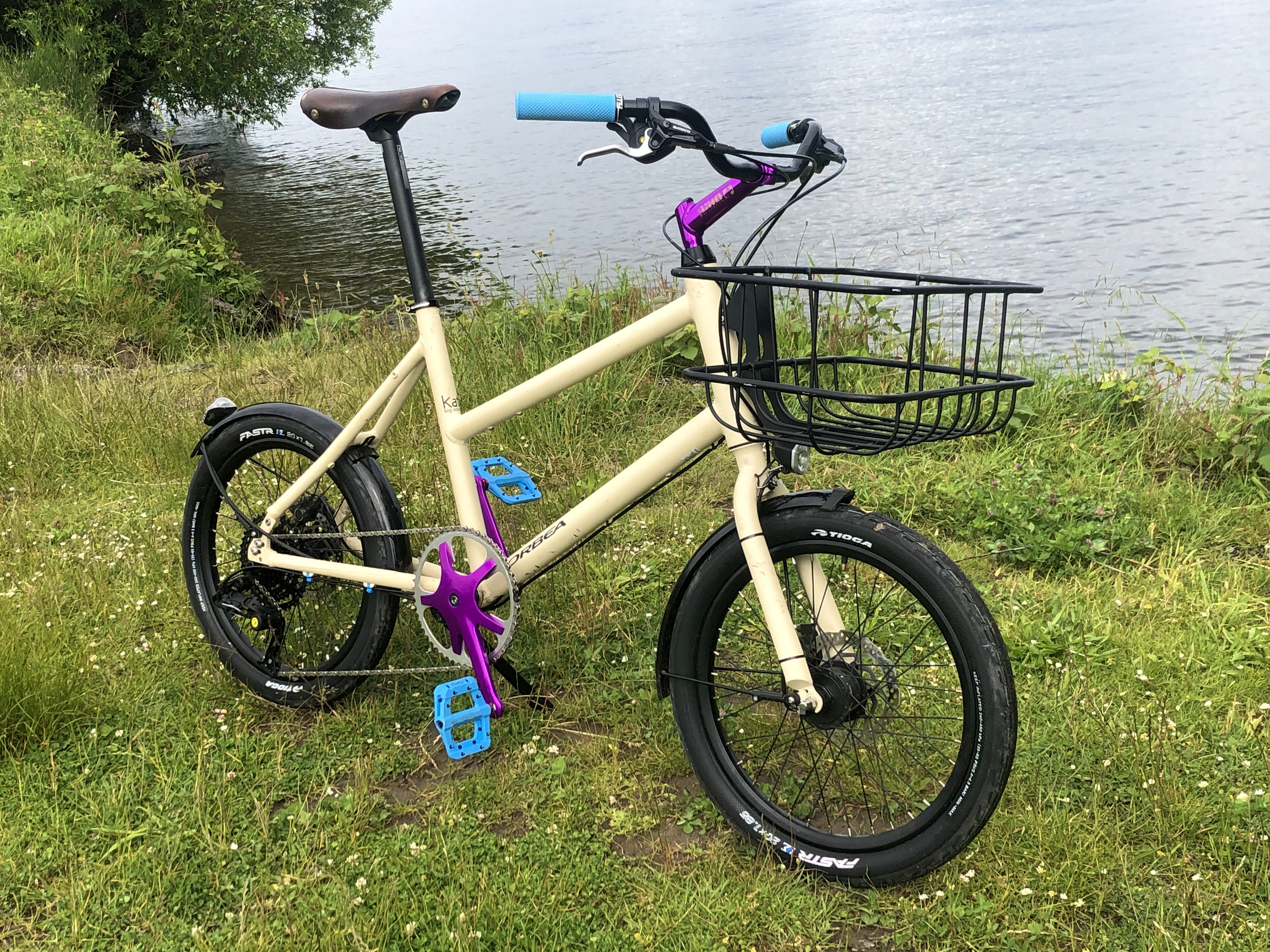 I gotta trim a ton off the hoses and shift housing, way way too long even with the aggressive sweep Dimension Urban Cruiser Bars (600mm x 50 deg Sweep x 70 Rise)