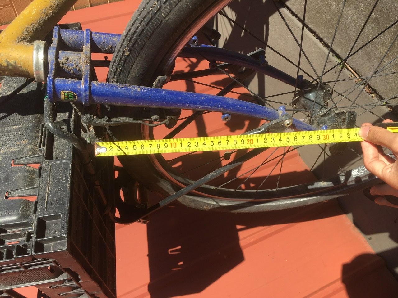 There is approximately 25cm from the fork eyelet to the bottom of the clearance limiting arch. It’s a strange rack, sits a bit too high on most mid fork eyelets that I’ve seen but is perfect on this odd fork.