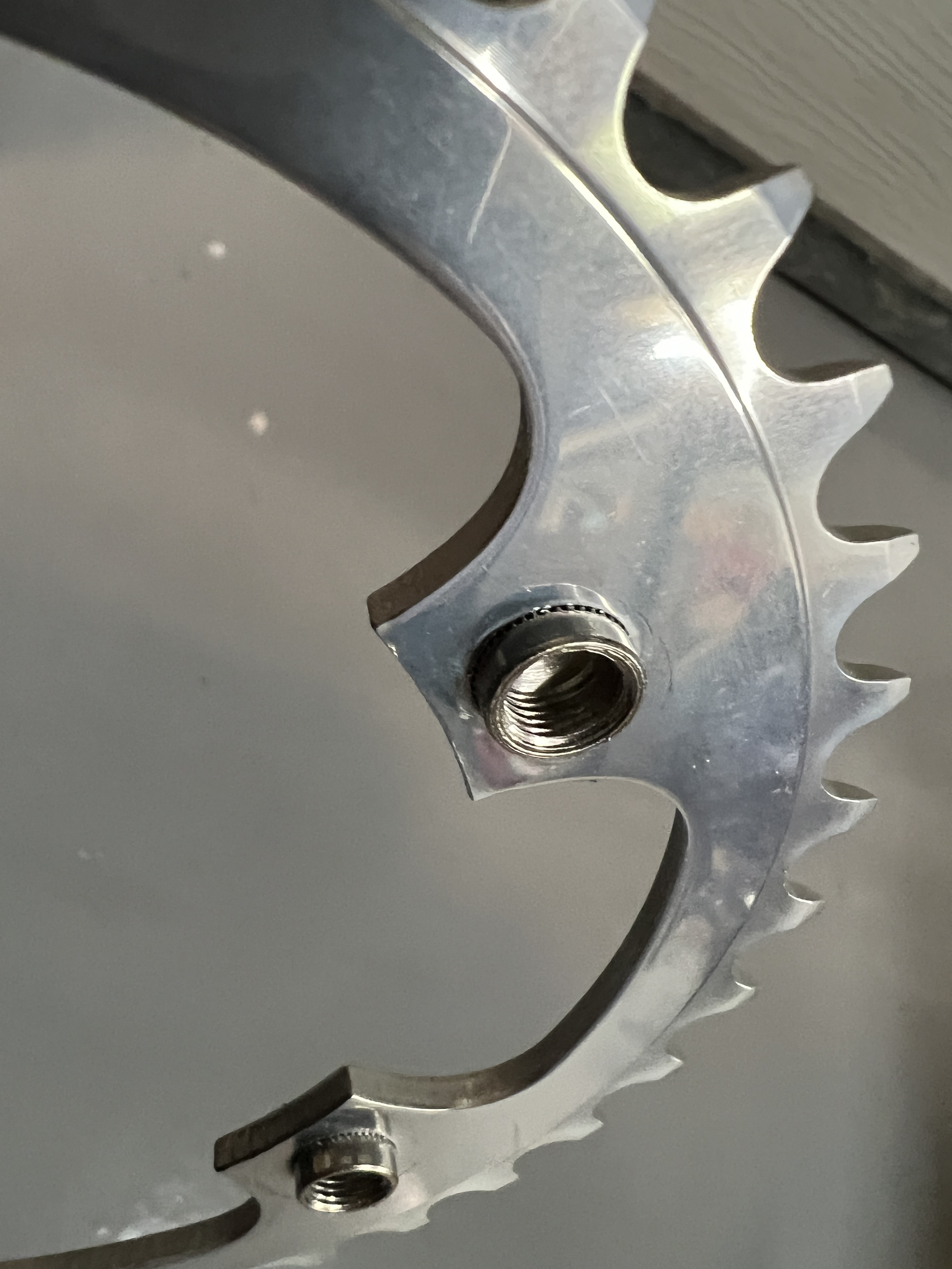You’ll notice that it’s a tandem timing ring. It was a good deal for a very nice 110BCD 38t ring. Should work fine with an 8-speed chain (I hope).