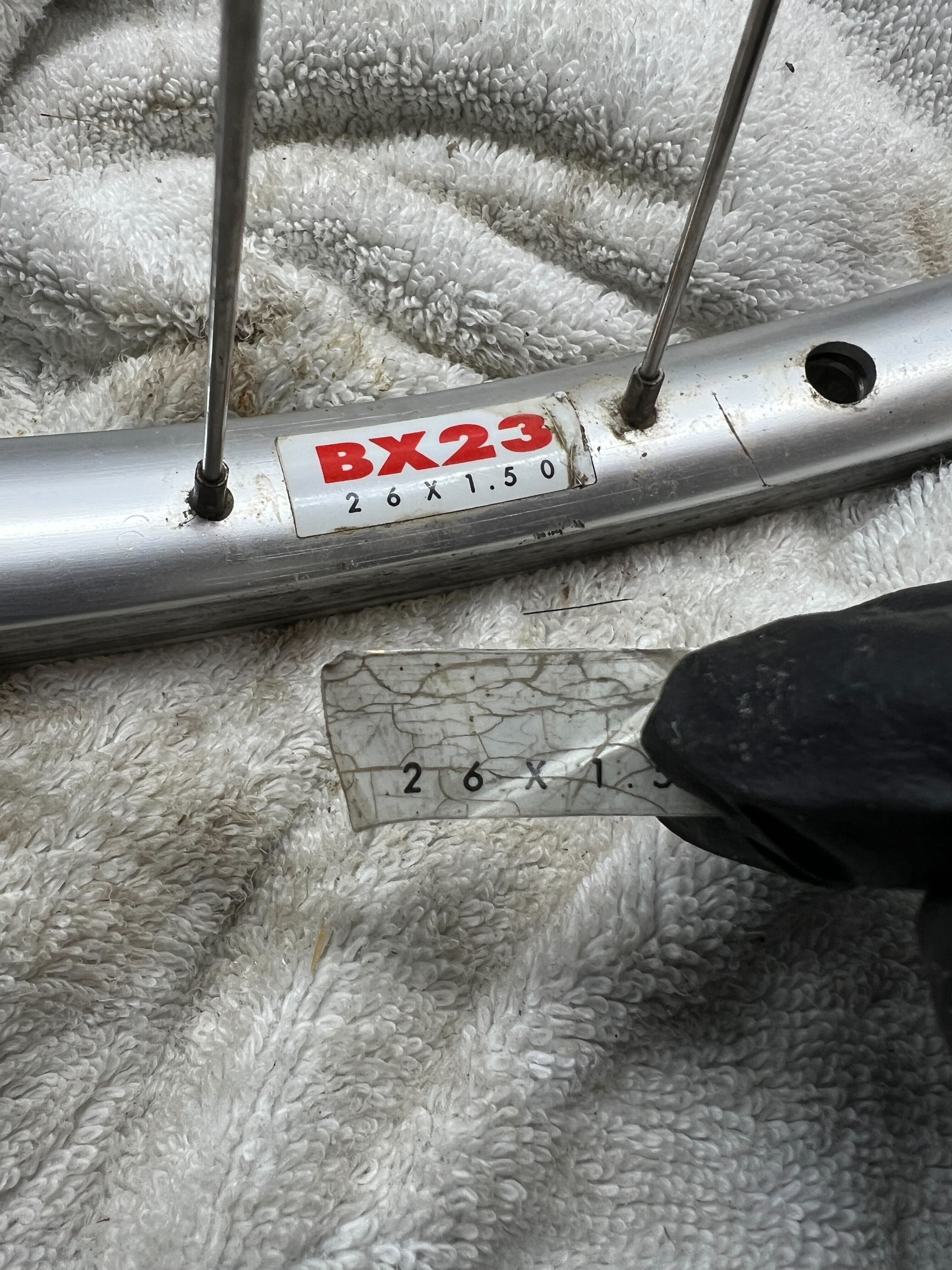 What on earth is going on here though? Were they like “Oh these are the same but it’s supposed to have X23 branding on it now, let’s just put that over top of the BX23.” But why also do that with the Specialized one?? The wheels came off the same bike, but of course someone could have replaced either the front or rear at some point, but still, why the double decal? Whatever man. They’re gonna both say X23 on them now.