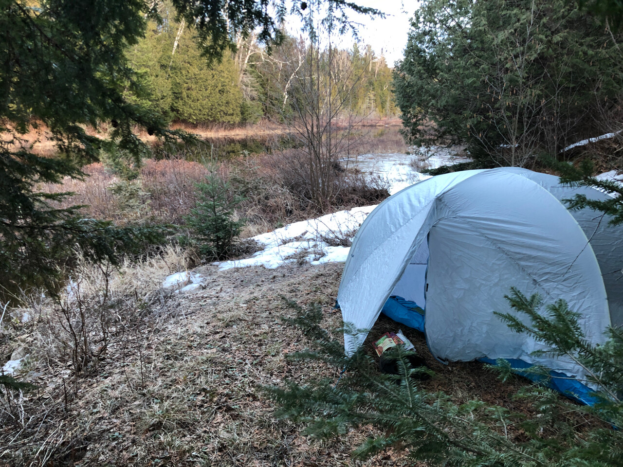 Found an amazing wild camping site beside the water and overheard a beaver slapping it’s tail all through the night as a treat.
