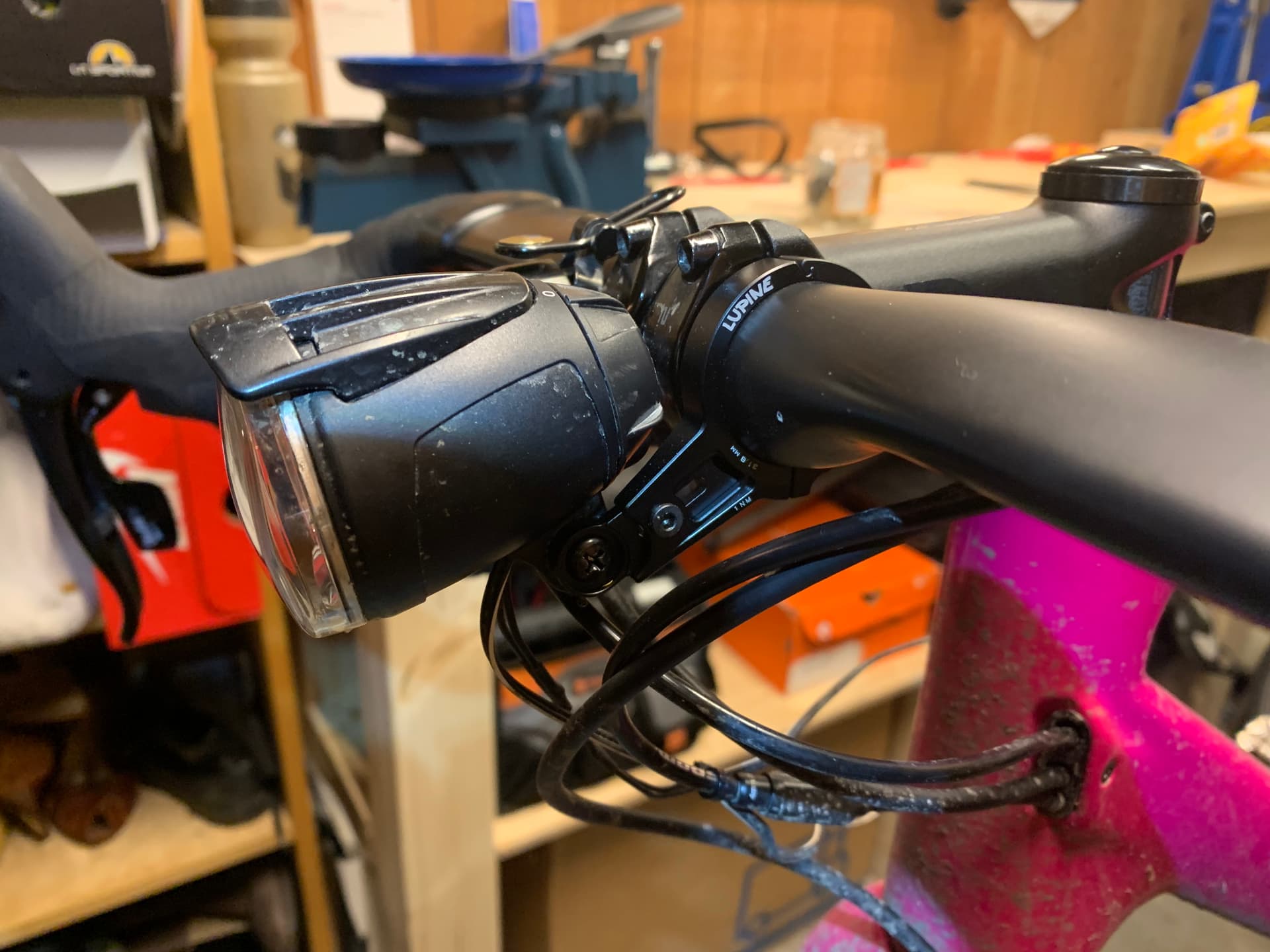 I wound up with a bar mount from Lupine that put it right in front of the stem. It’s slim and elegant and totally solved it. I’ll post pics when I re-do all the cables nicely.