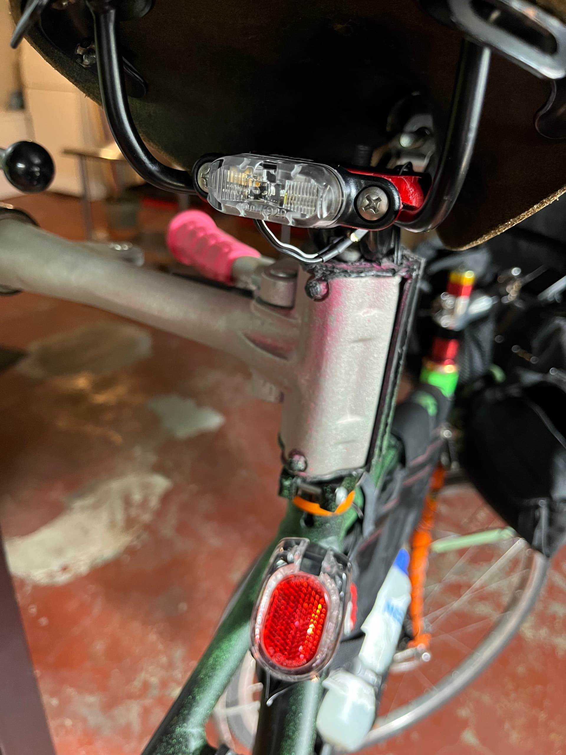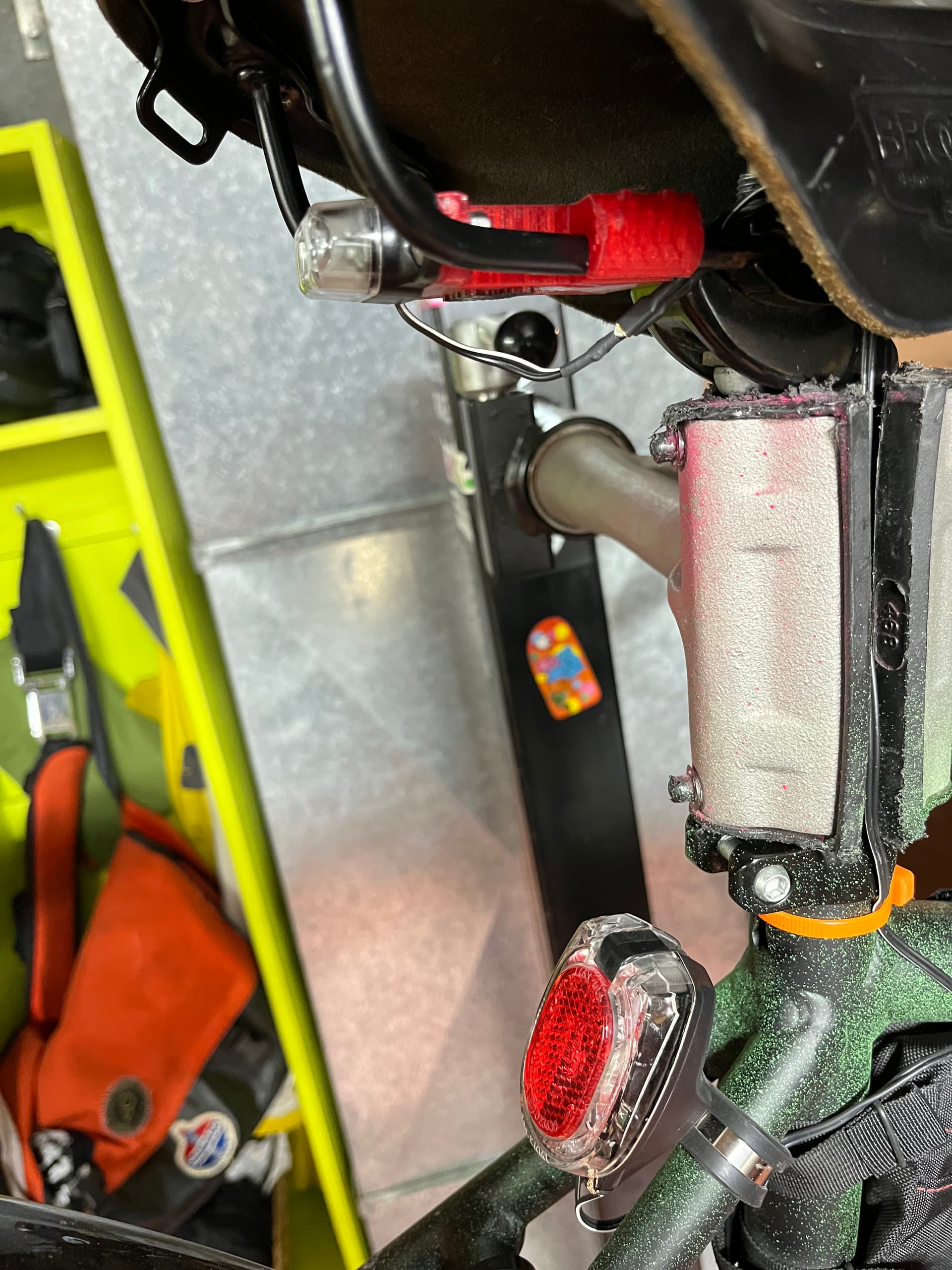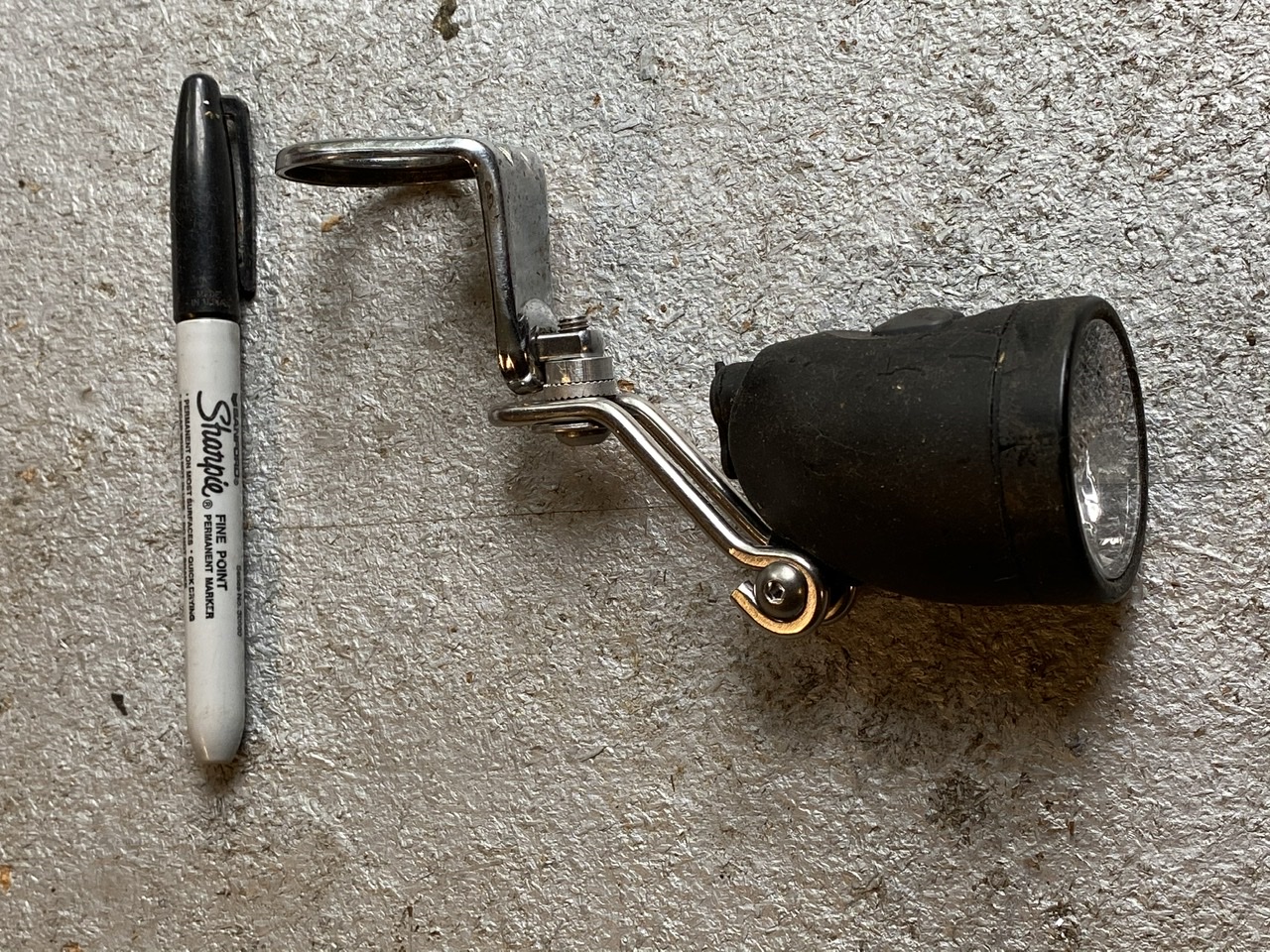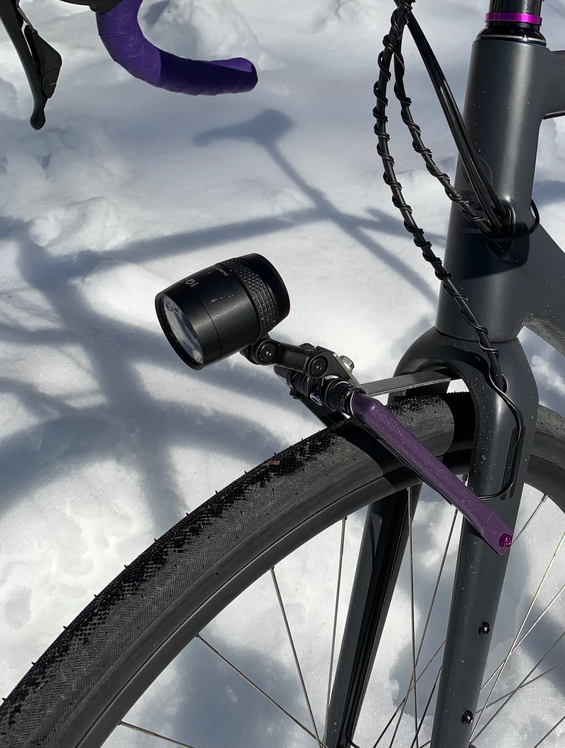 I set my wife’s bike up this way. She’s on 650b wheel with a <100mm head tube, so it basically puts the light in the same place as a fork crown mount would. My version doesn’t look as nice as JP Weigle’s, but it worked well.