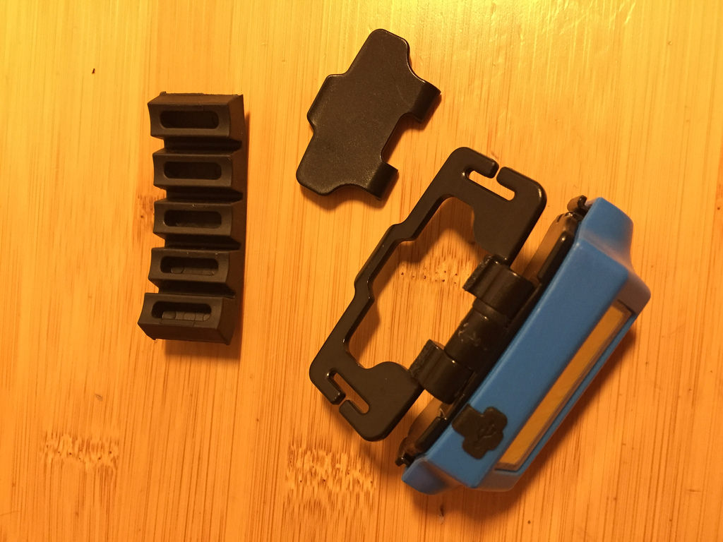 I chopped it up and removed the plate that allows you to attach to ball cap. Found a rubber thing in my parts bin which worked out perfect to buffer weird shape between helmet and lamp. Zip-tie to secure