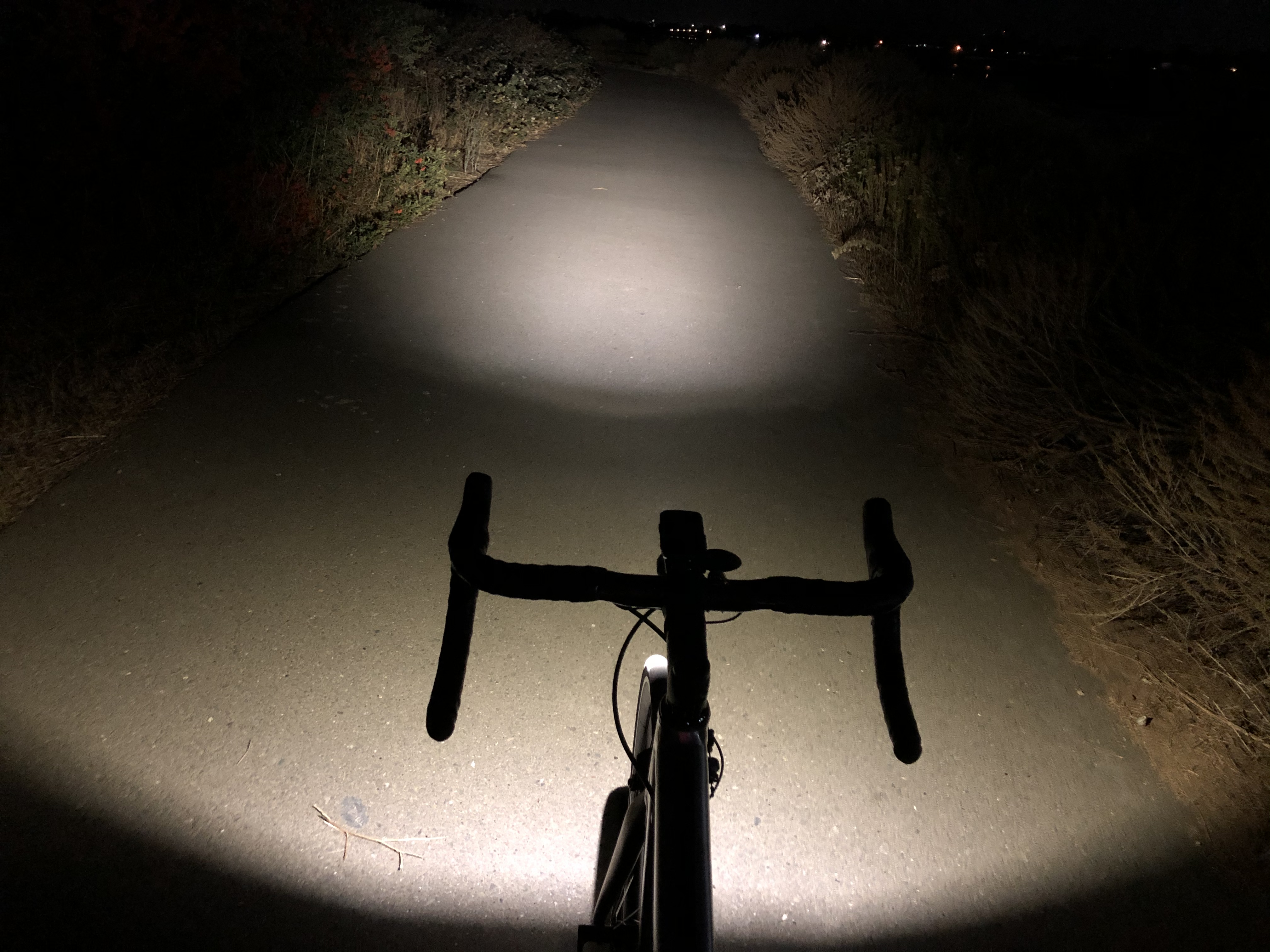 This light is great for road users that don’t want to blind others. As I passed joggers, it barely illuminated their faces. It also had a sharp cutoff on the edges such that it doesn’t do a great job illuminating 90 degree corners on a MUP taken at speed. Likely nobody would ever see a turn so sharp on a road. Not for trails though.