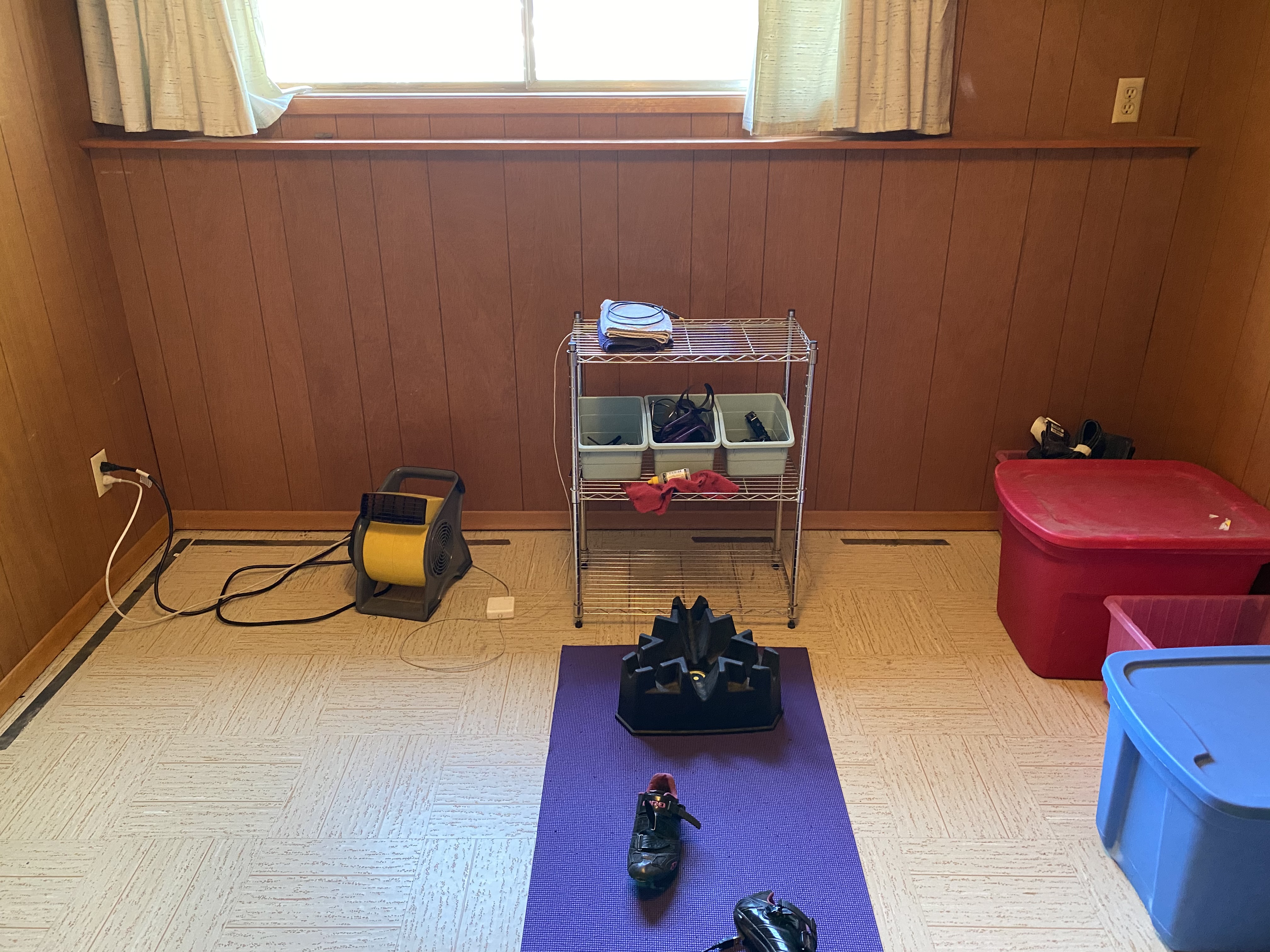 It’s obviously not pointed the right way in that pic, but that’s pretty much what I’ve got going on. I open that big window and then have the fan pointed at me. It’s effective enough that I feel chilly if I’m not really working, but I still overheat when doing harder efforts that last more than a minute or 90 seconds.