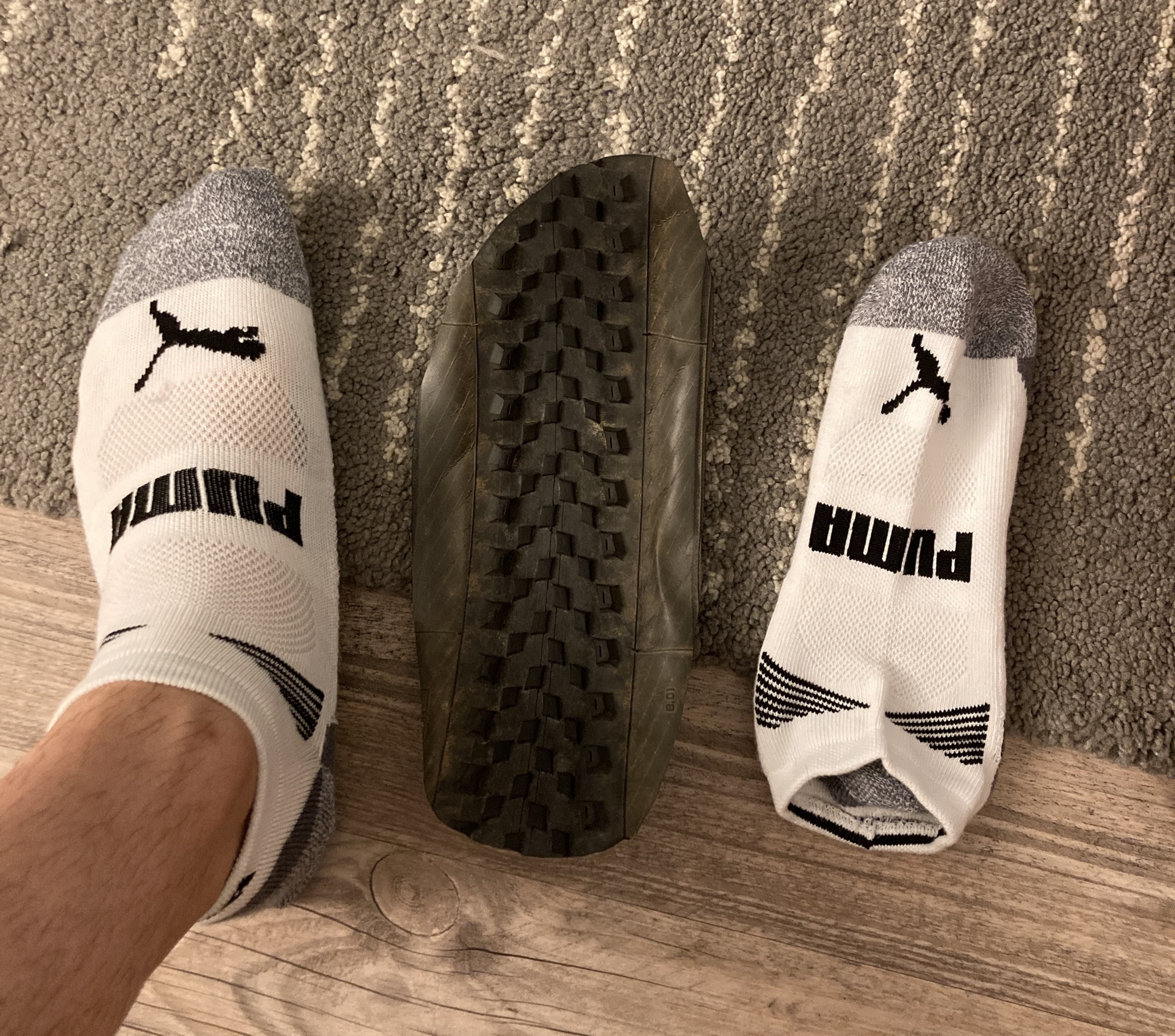 I had thought about doing cutouts for the lugs but turns out after the first step it doesnāt matter, the sock loads up with sand/grit and grips fine. Everyone who has seen them IRL is disgusted by the concept but I like my soccasins and Iām going to use them this Winter too.