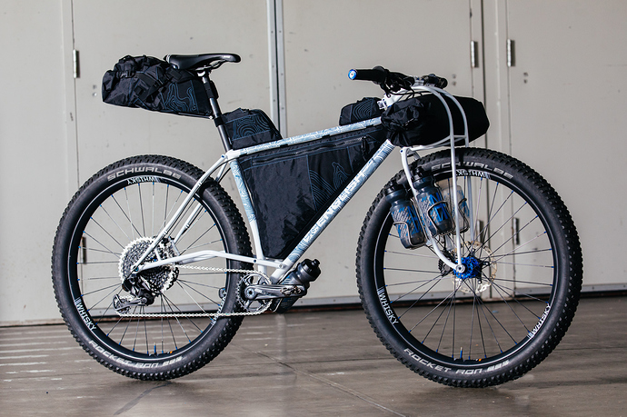 The e-stays let you run shorter chainstays, but that’s not a feature I’d look for on a bikepacking bike. But it’s his bike so…
