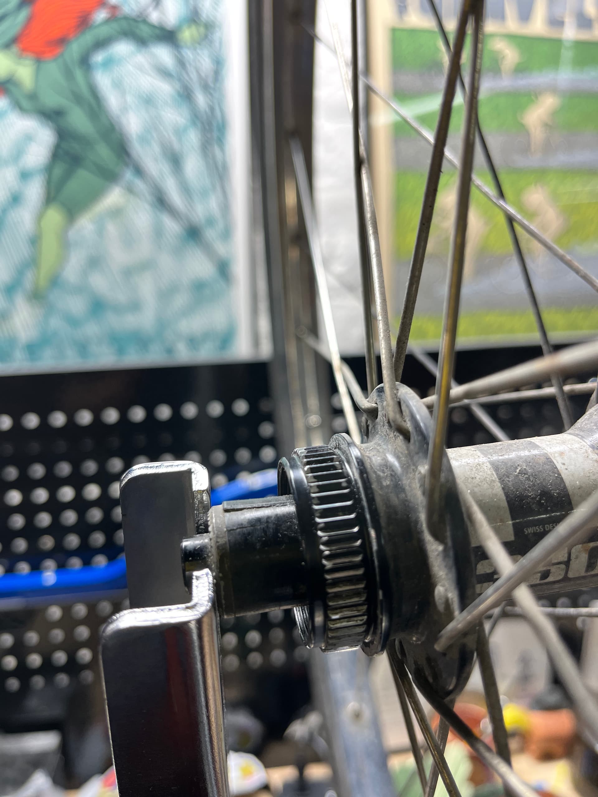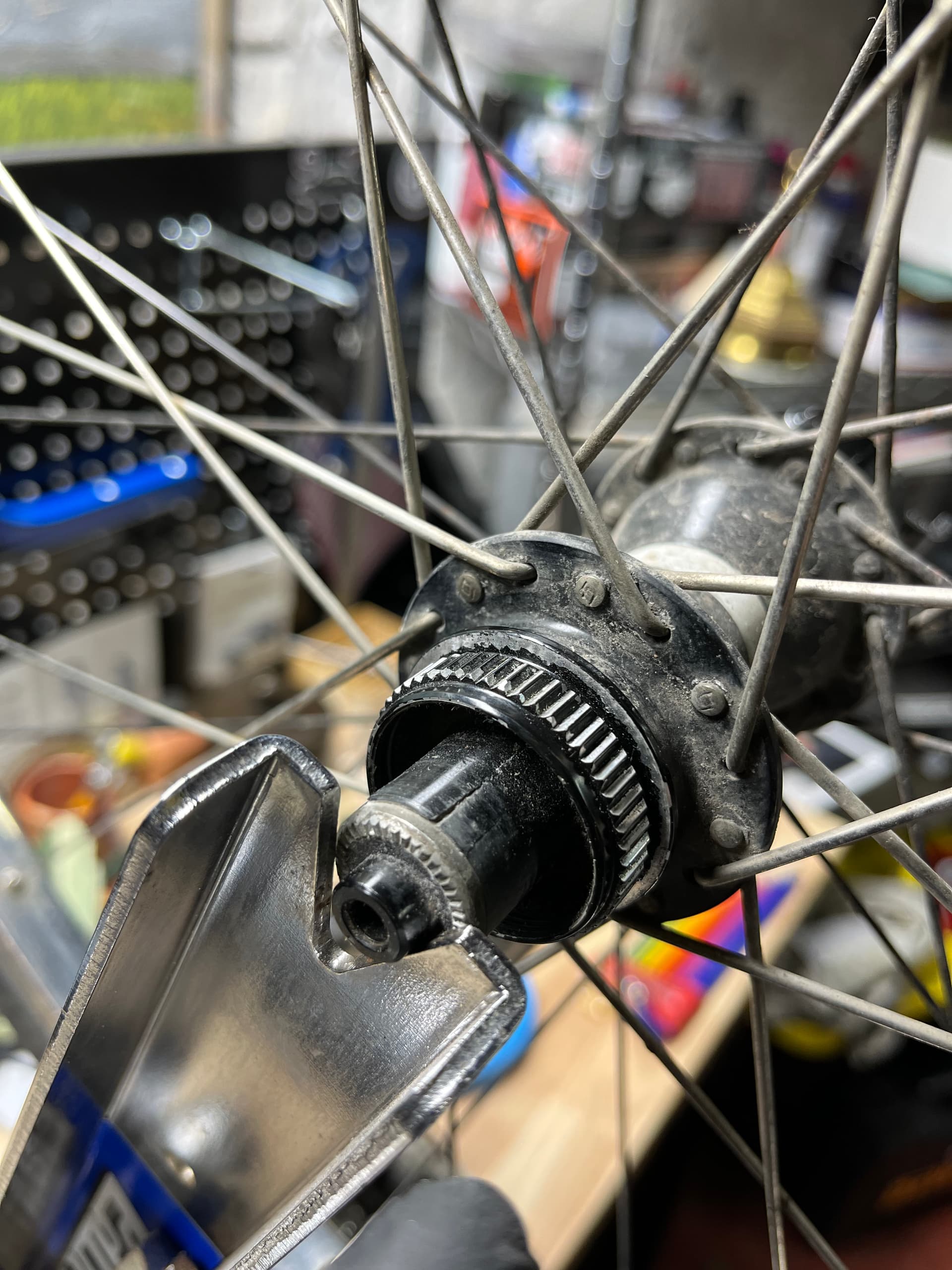 but here you just put a big bolt through the spindle hole and tighten a nut onto that