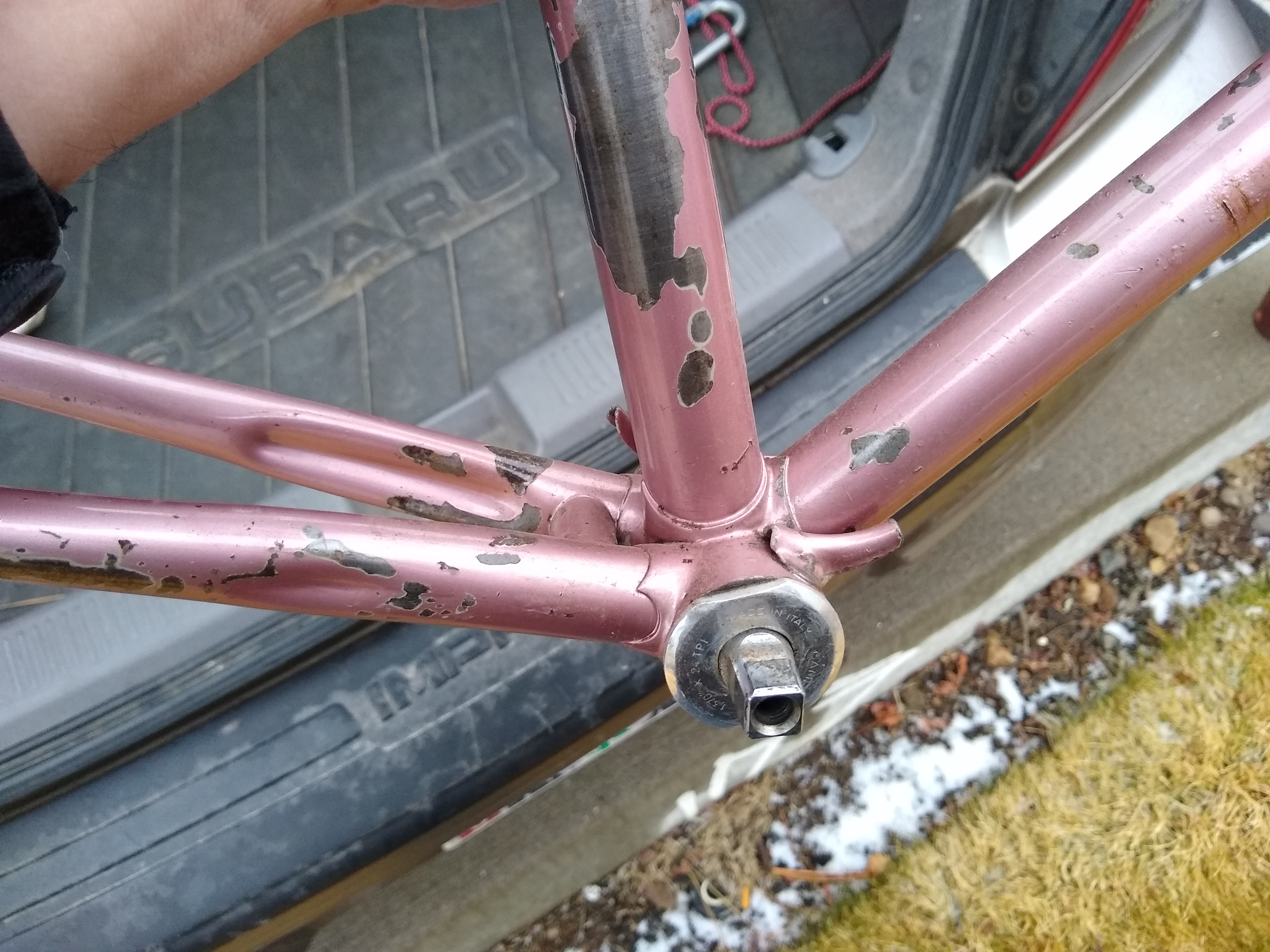 Is the bb seized? That seatpost crack looks pretty whatever. You could add a coat of clear and ride it as is.