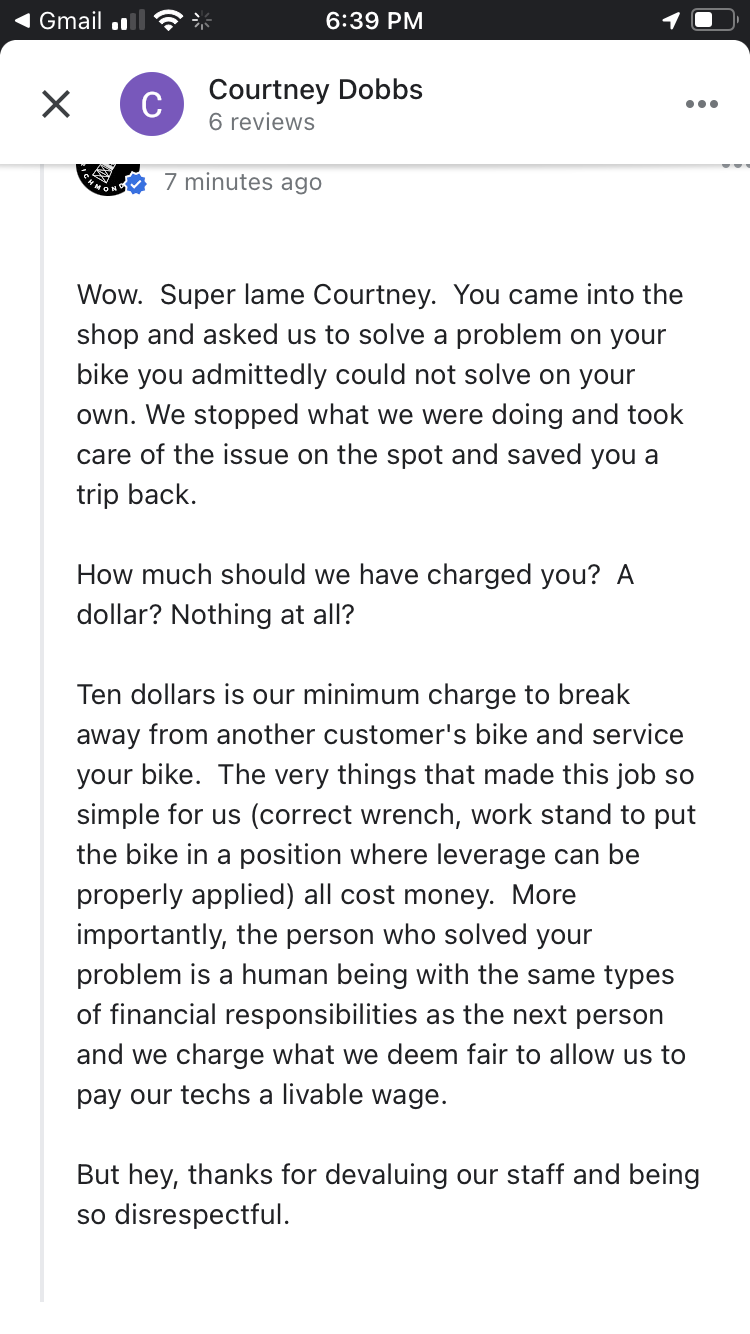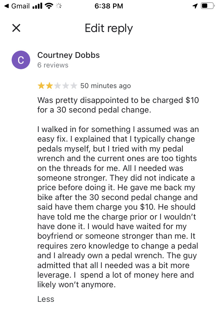 Also… since I always make a point to leave good reviews for bike shops when Karen’s strike…