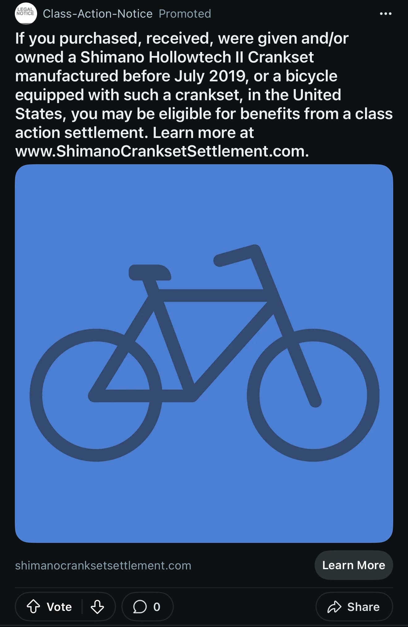 trekalized are also defendants https://www.shimanocranksetsettlement.com/