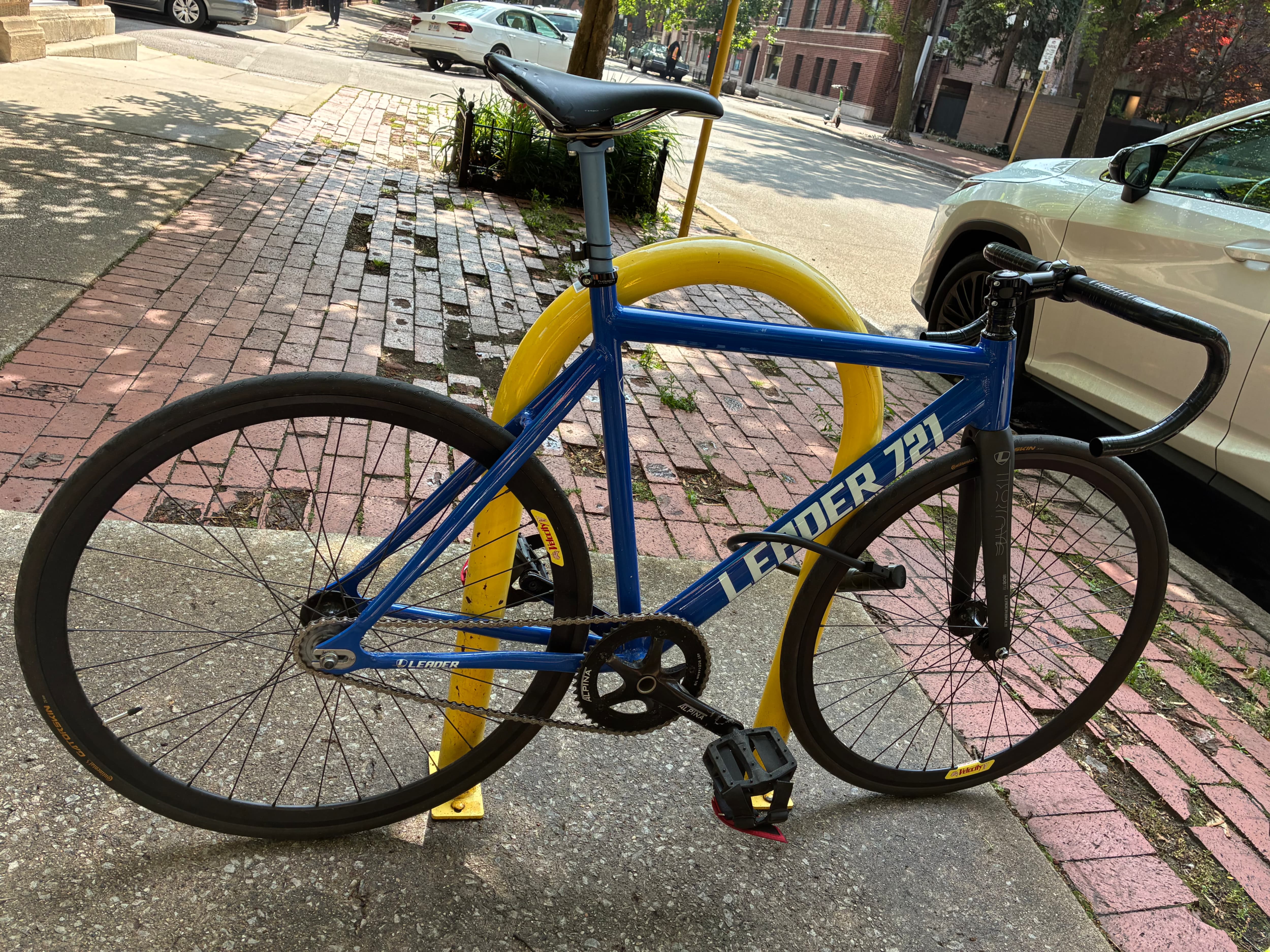 Oh boy I saw the most 2008 guy yesterday but couldn’t get a picture. Skinny jeans, Onitsuka Tigers, CK cycling cap, sticker bombed single speed with no rear brake, Deep V front wheel, narrow risers rolled forward, doing the swing-the-leg-over-the-bars dismount, gigantic Chrome messenger bag
