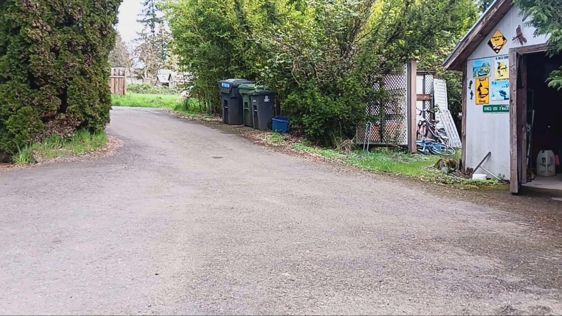 Clown bike locked outside the pottery studio.