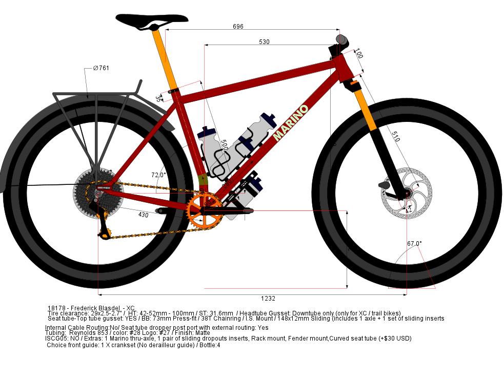 - Currently has 2x9 Shimano triggers with a Tiagra 110 5-bolt triple crank - a chainguard as outer, 46 middle, 30 inner.