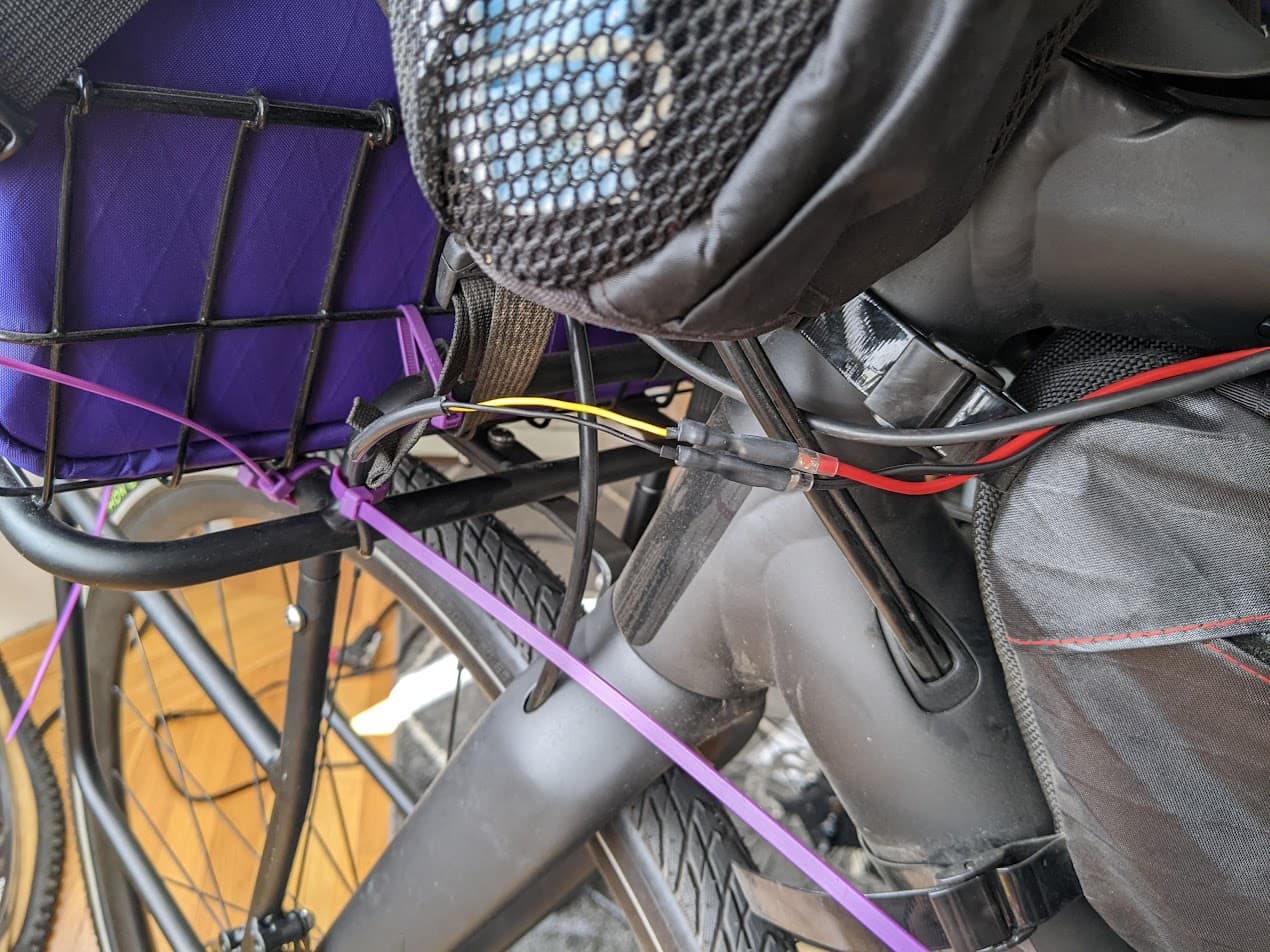 i can’t figure out how to deal with the existing wiring for the saddle-mounted light, so i think i’m just going to snip it and shoot a whole new wire through the frame.