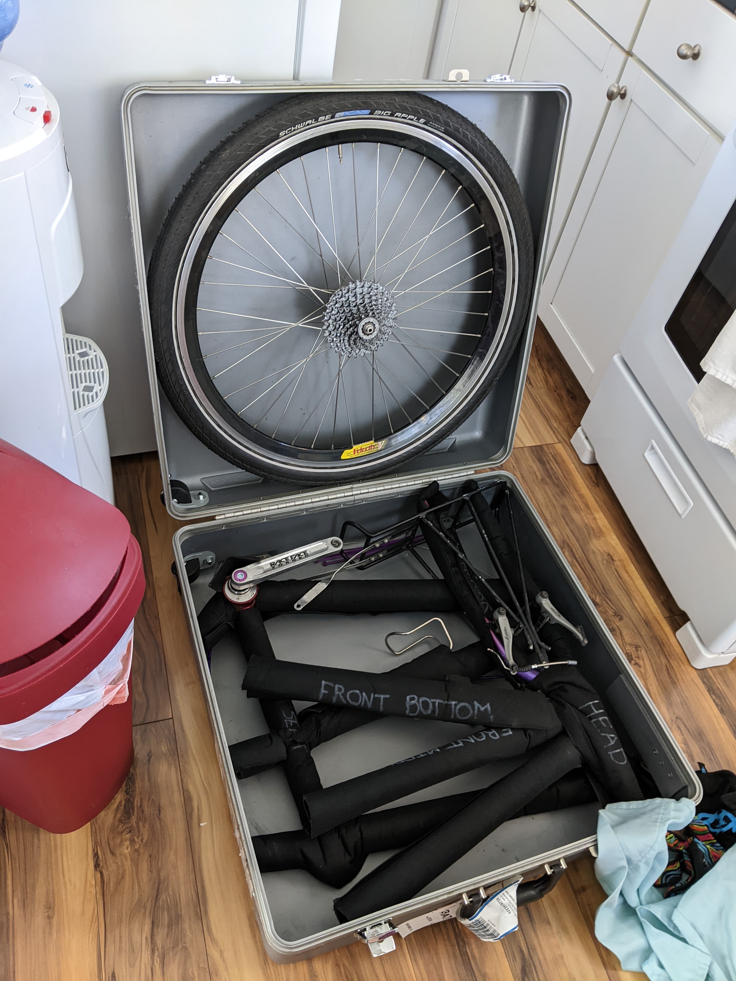 Thanks to the bike shop 4 blocks from the Airbnb for the pump bc I had to totally deflate the tires to get them in the case.