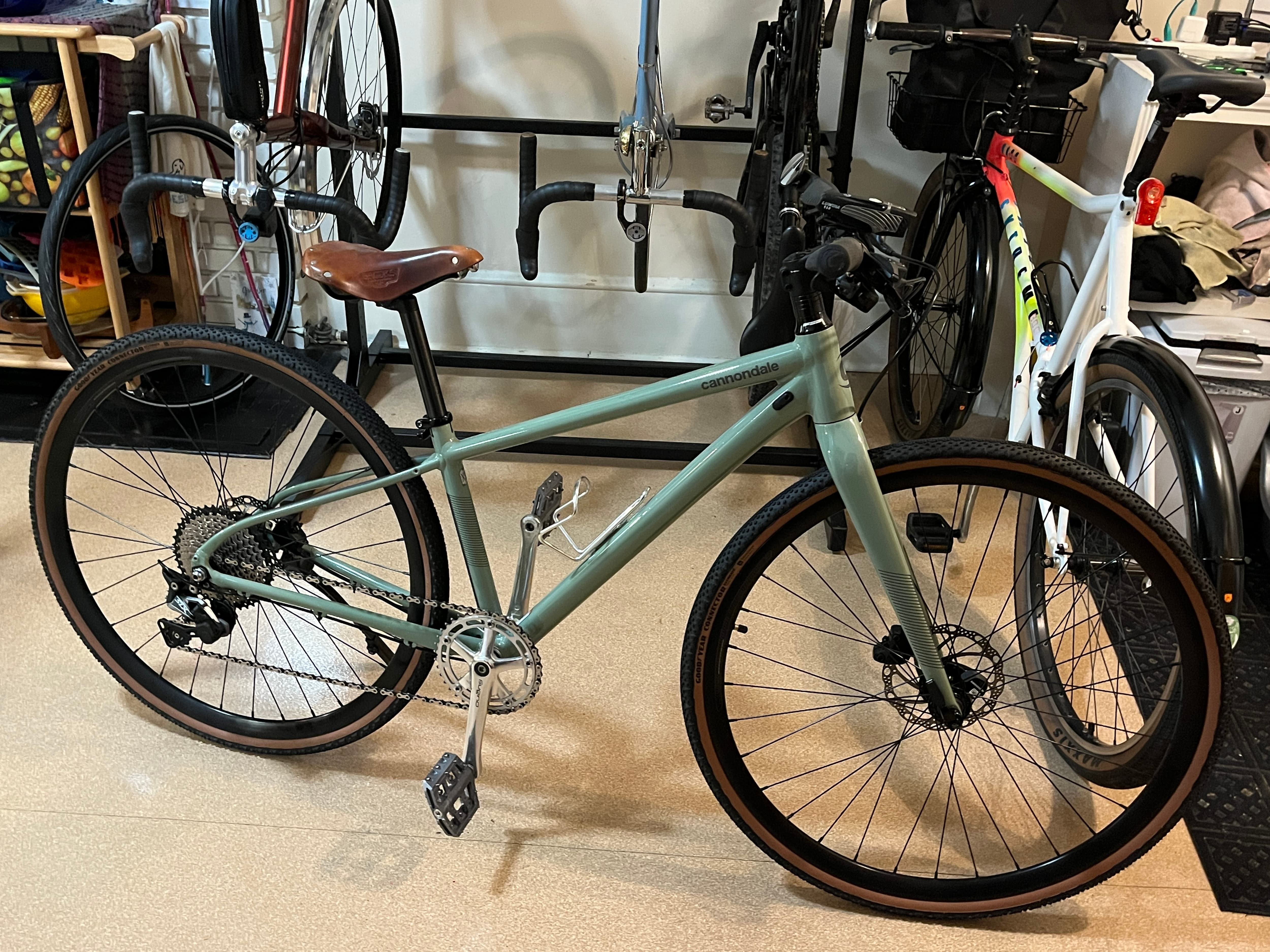 Swapped an alloy seatpost, RD-M610 RD & 10 speed 11/34 cassette and 32mm Schwalbe Spicer tires with a Salsa Guide carbon post, RD-M7000 & 11-46 cassette, and 35mm Goodyear Connectors that I got from a friend.