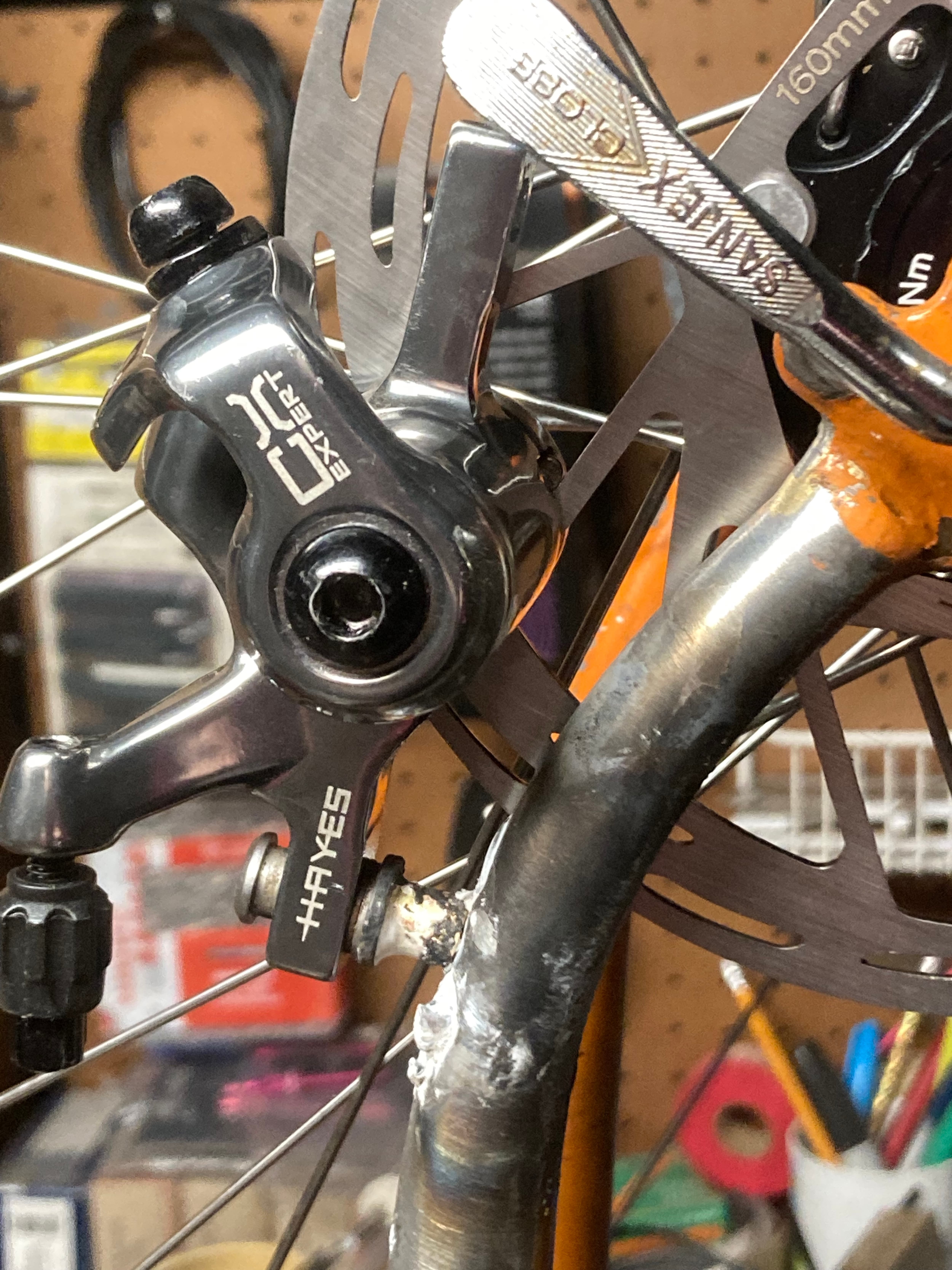 Helping my friend rebuild his stolen Spec AWOL. We started on the hydro brakes yesterday. Did I mention I HATE hydros?