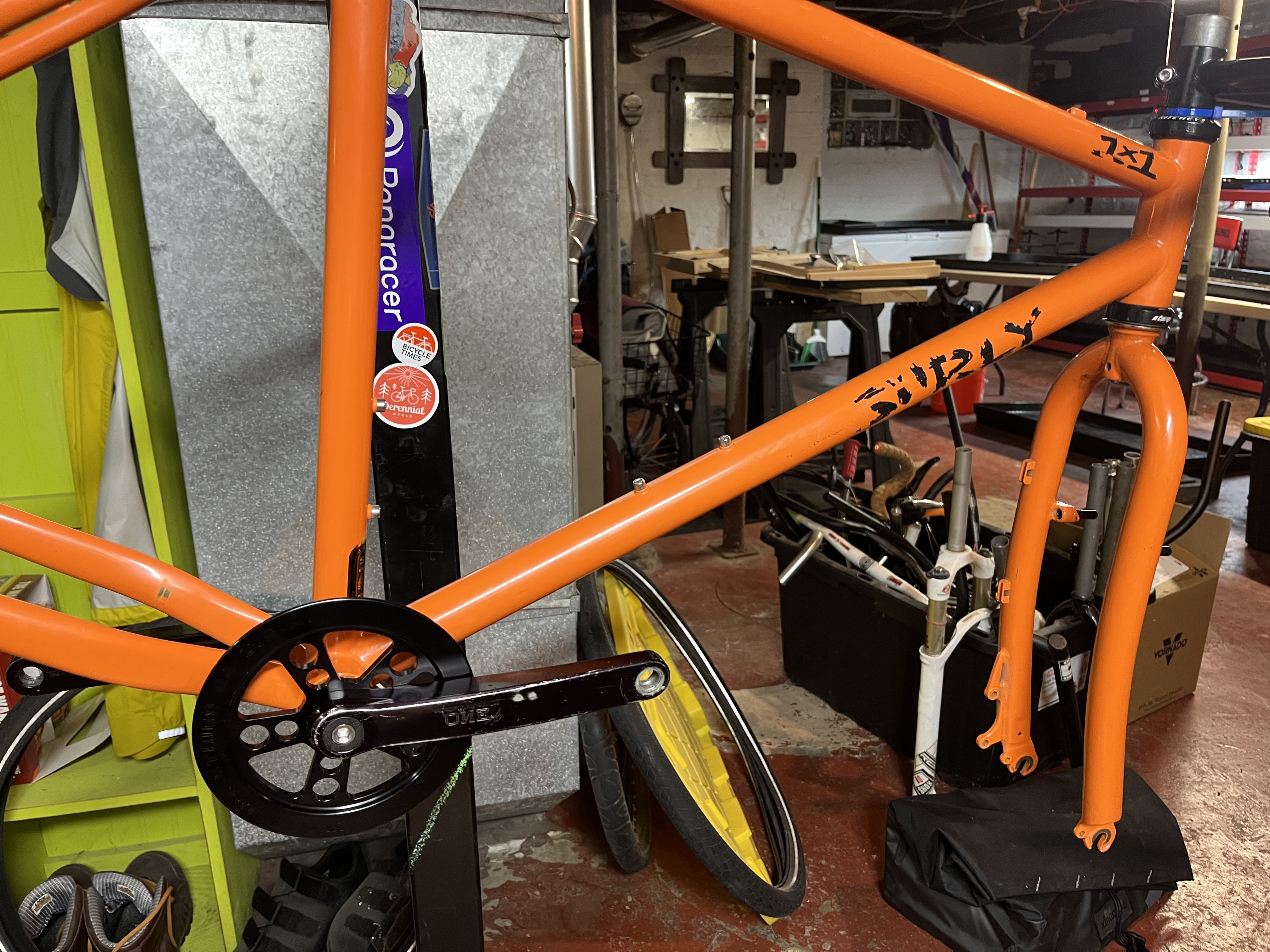 There’s a huge guy I see pretty regularly on a humongous titanium Zinn. The headtube is longer than my forearm. He’s truly a majestic mamil.