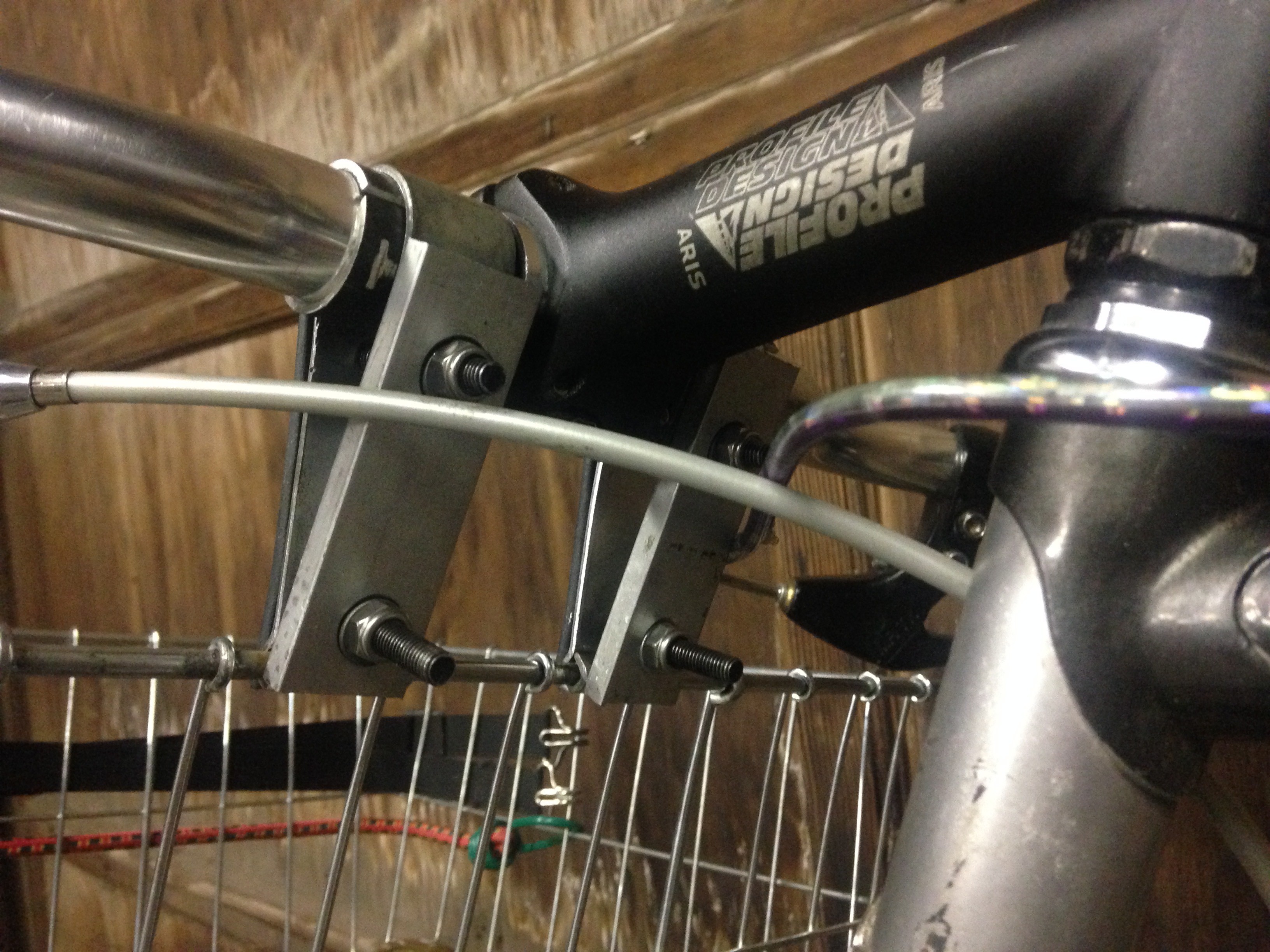 The handlebars I’m using with my wald basket don’t have a wide enough center section so I cut up an old seat post for shims. Then did some buttressing of the clamps with some metal scraps. Feels much more solid now.