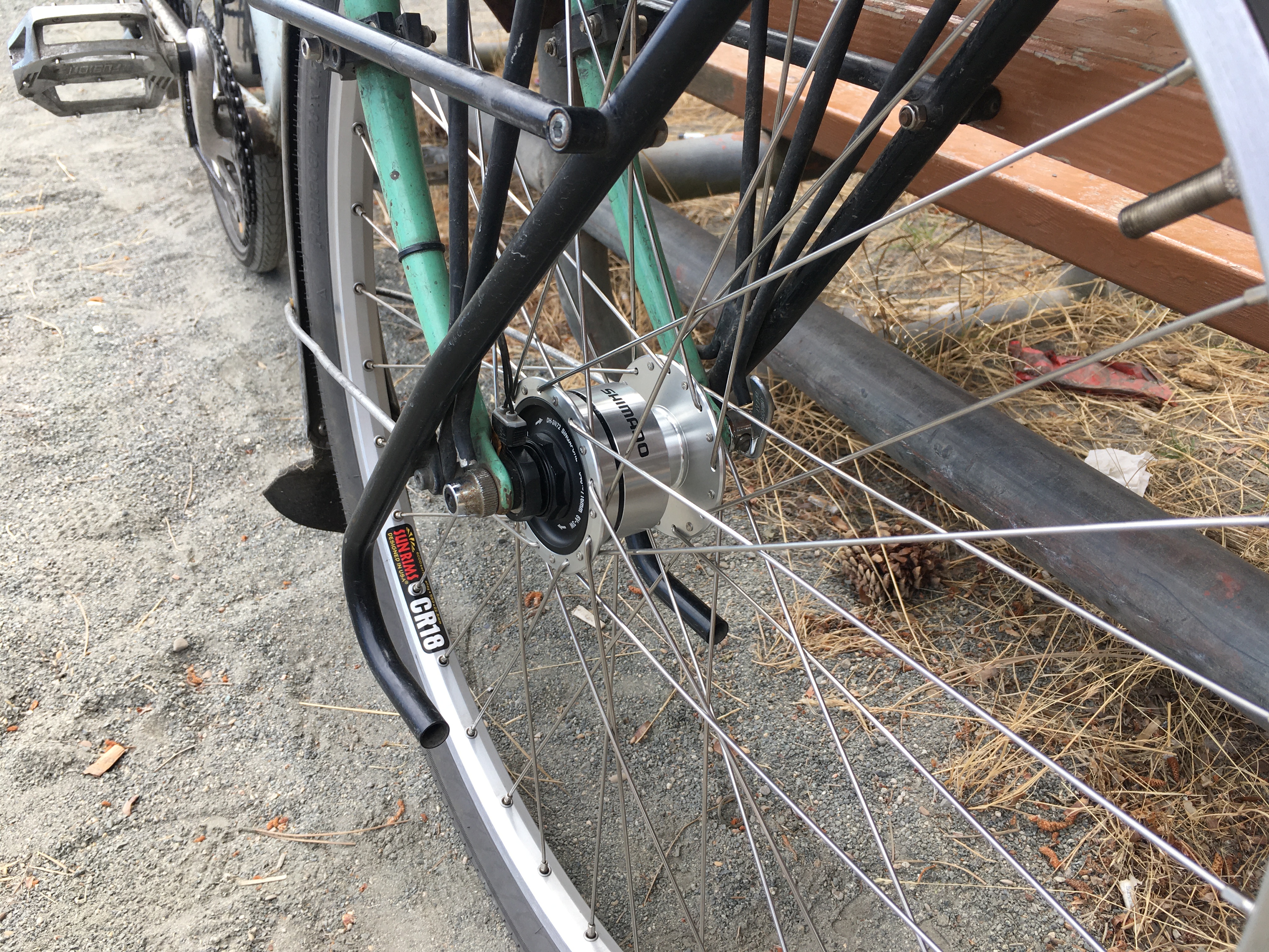 Built new wheels for commuter. Old rims were super scooped out and the hubs were pretty worn out too. Sun CR18 rims, DH-3N72 front hub, rear hub from a used shop, might be a 1st gen xtr? Old 36h hubs are hard to find!
