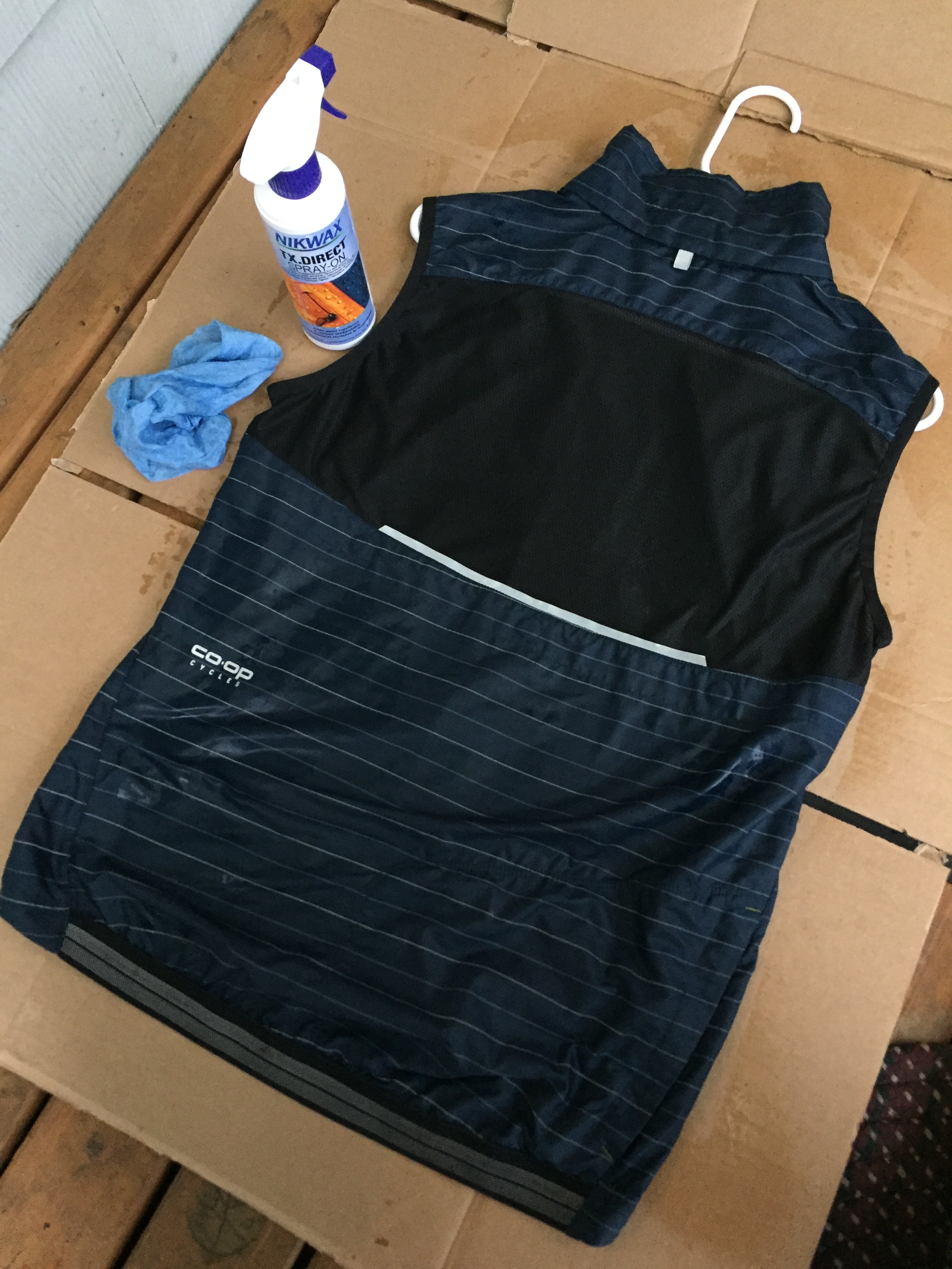 First time trying to increase the water repellancy of a garment. The REI coop jacket has a removable cape/sleeve that is fantasticly waterproof but the vest portion is just a little too permeable. Wondering if this will mess up the grid of reflective thread