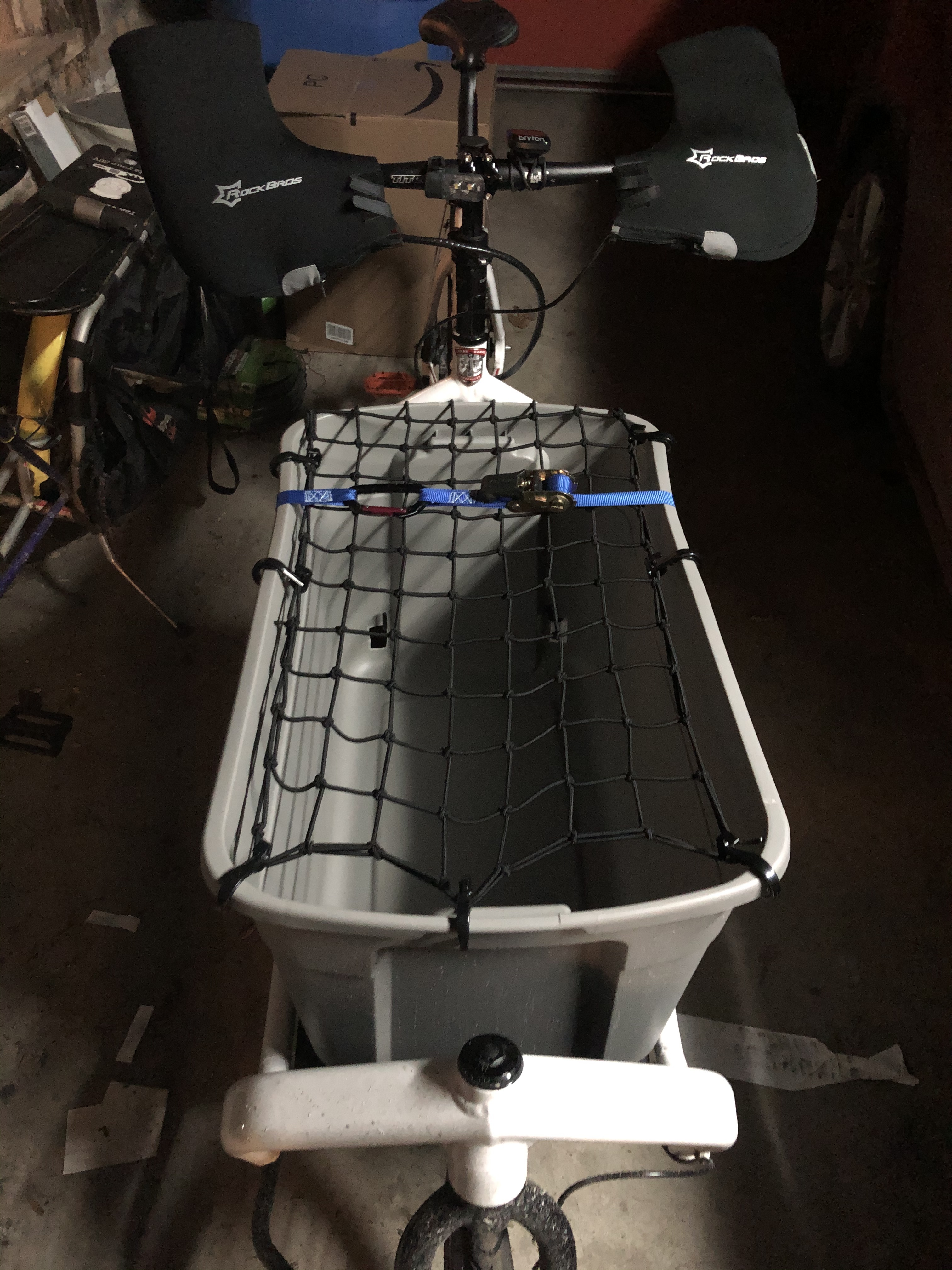 right. digging the setup! we did something similar with out shitshow of a trike that i hated other than getting to ride my kid to the biggest baddest playground in philly